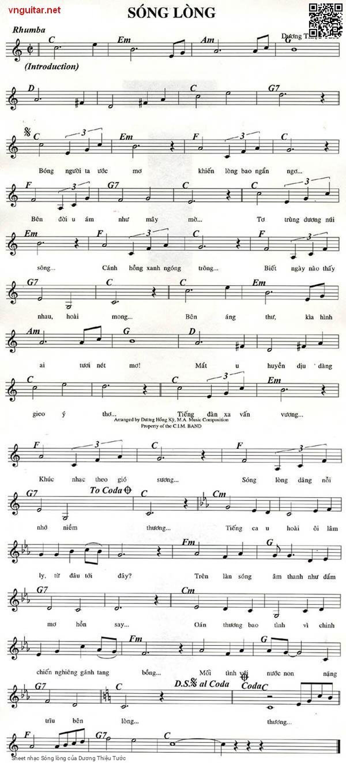 Chọn nút dấu + để tăng tông lên nửa cung, nút dấu - để giảm tông xuống nửa cung. Rê chuột vào hợp âm để xem các thế bấm hợp âm của bài hát Sóng lòng.