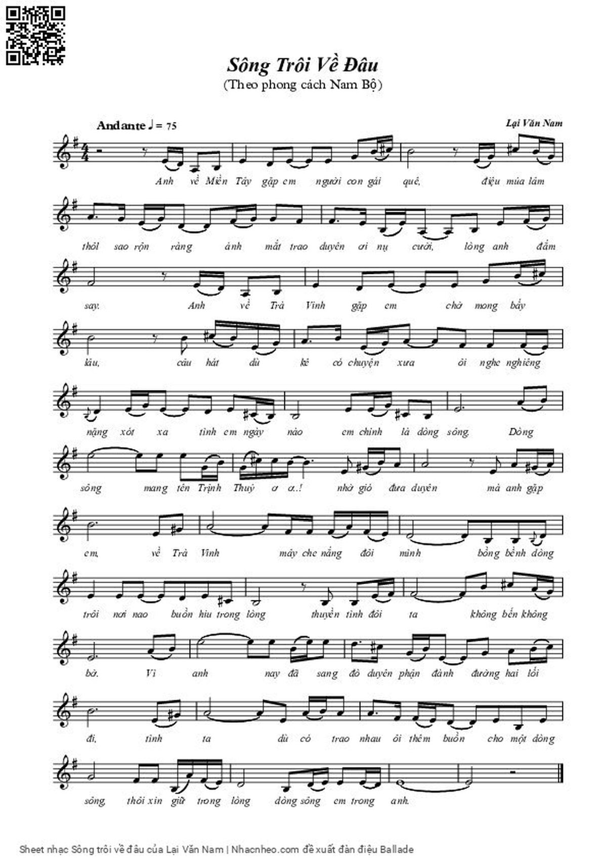 Chọn nút dấu + để tăng tông lên nửa cung, nút dấu - để giảm tông xuống nửa cung. Rê chuột vào hợp âm để xem các thế bấm hợp âm của bài hát Sông trôi về đâu.
