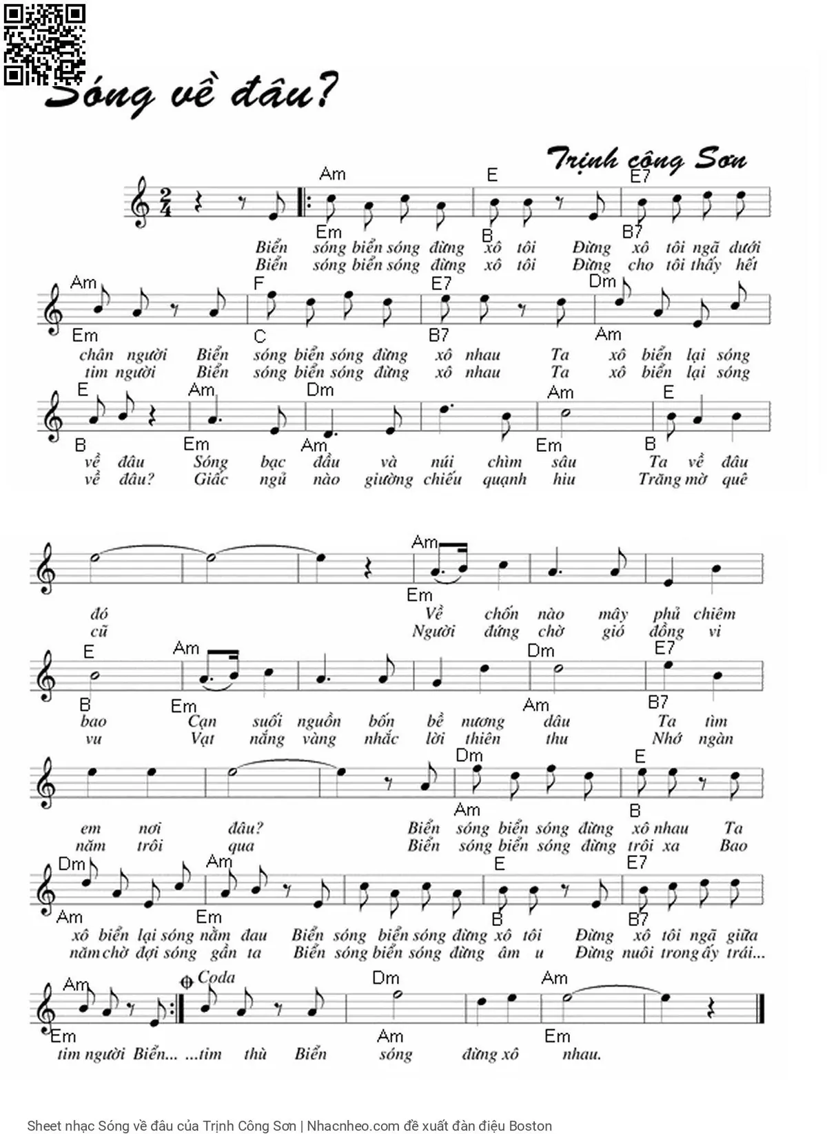 Trịnh Công Sơn Biển sóng biển sóng đừng xô tôi Đừng xô tôi ngã dưới chân người [PDF] [Sheet] [Lời H.A] [Mp4/Midi]
