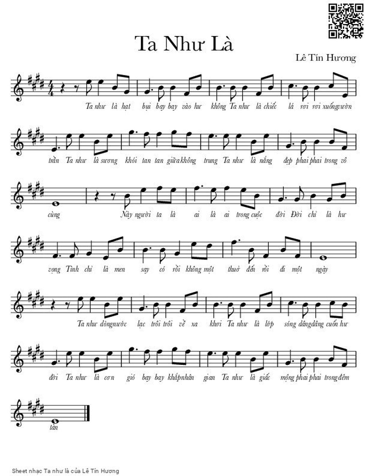 Lê Tín Hương Ta như là hạt bụi bay bay vào hư không Ta như là chiếc lá rơi rơi xuống vườn trần [PDF] [Sheet] [Lời H.A] [Mp4/Midi]