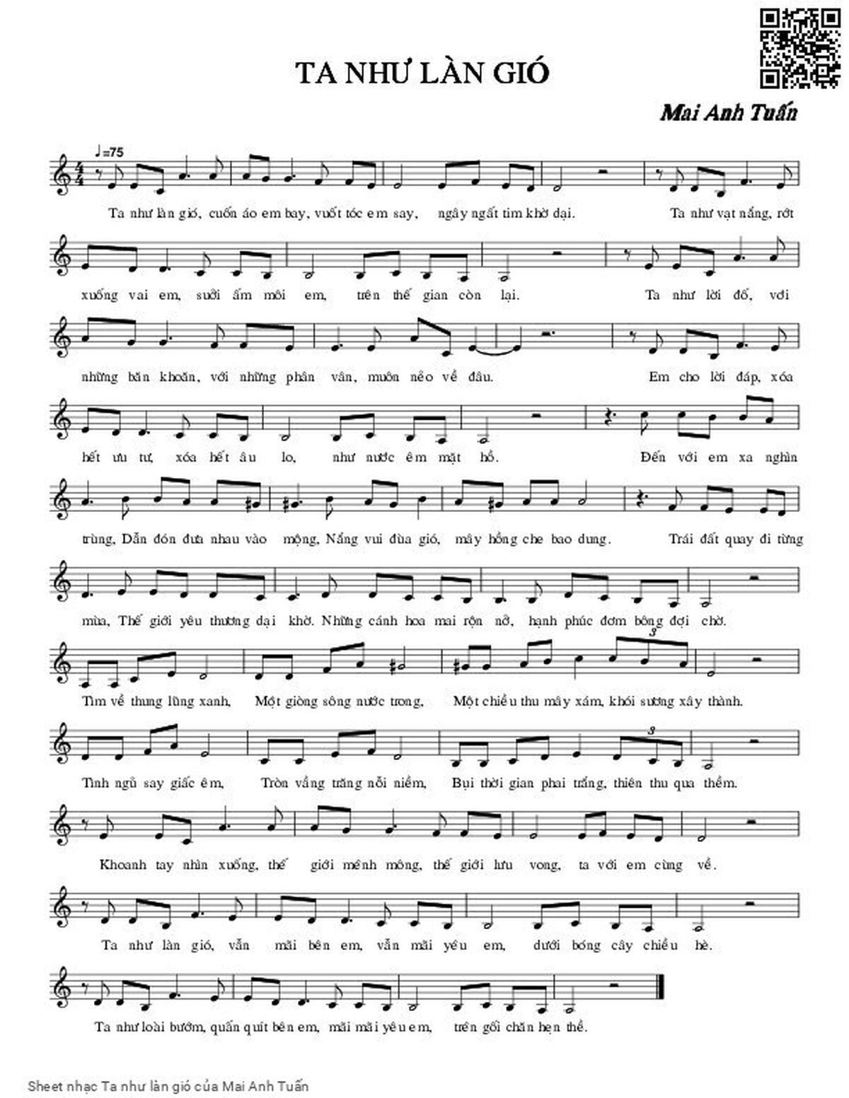 Mai Anh Tuấn Ta như làn gió cuốn áo em bay vuốt tóc em say [PDF] [Sheet] [Lời H.A] [Mp4/Midi]