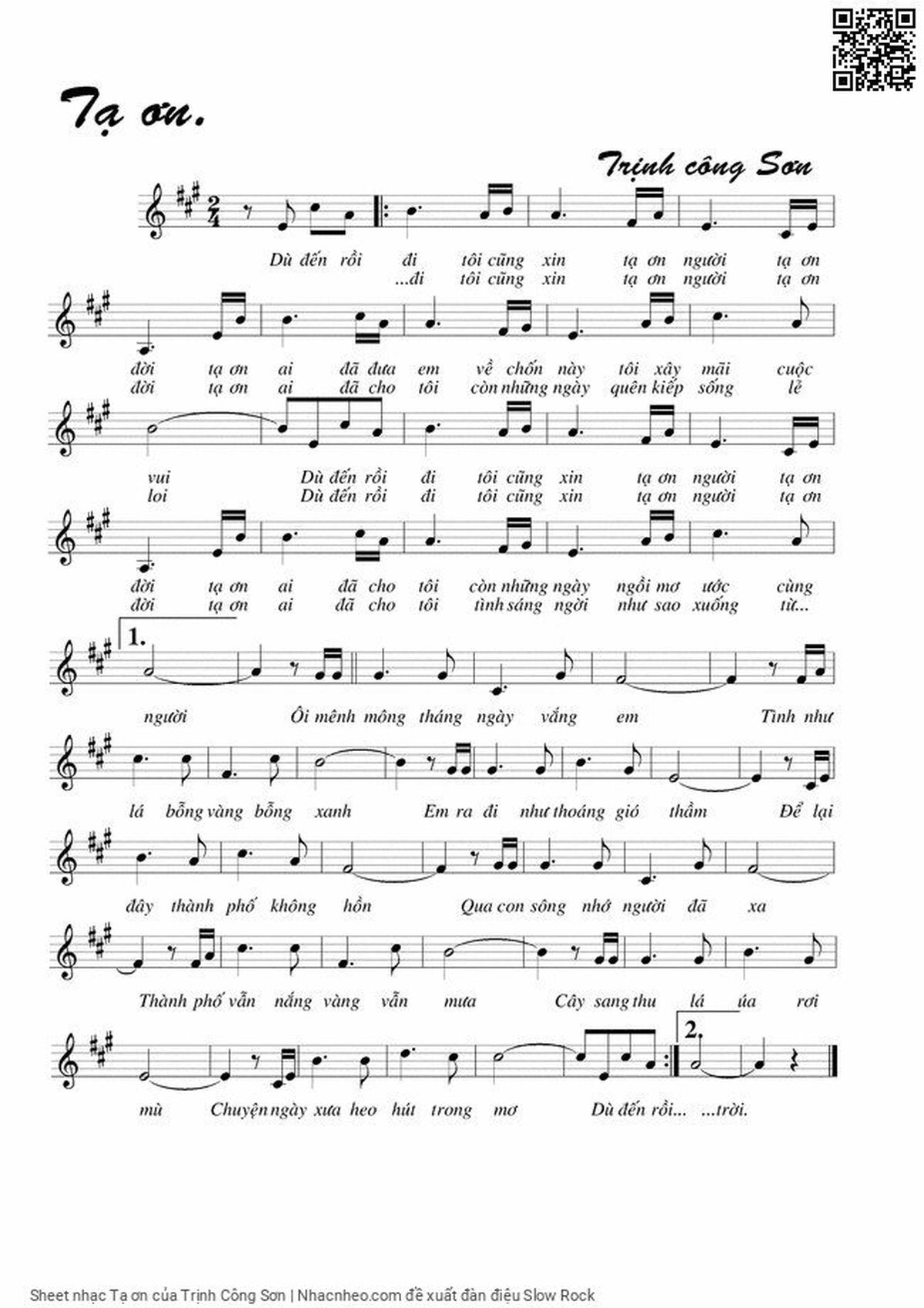 Trịnh Công Sơn Dù đến rồi đi tôi cũng xin tạ ơn người [PDF] [Sheet] [Lời H.A] [Mp4/Midi]