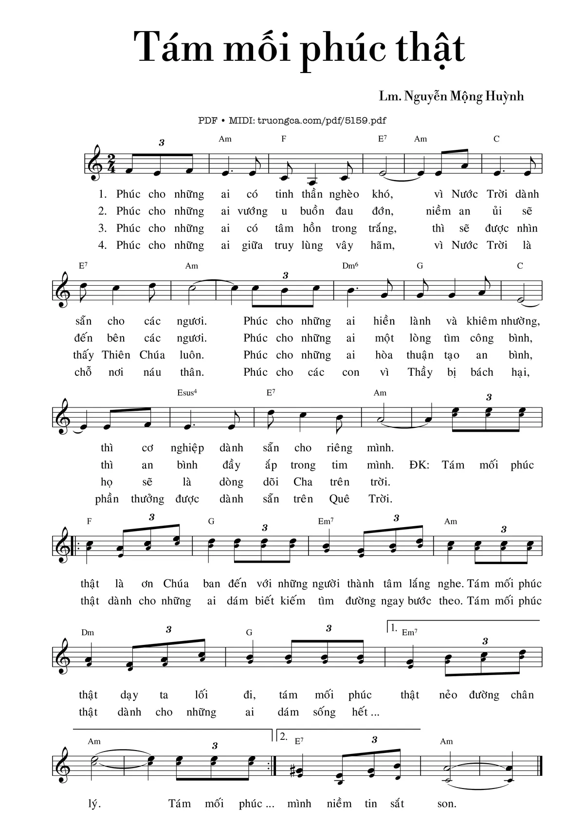 Lm. Nguyễn Mộng Huỳnh Phúc cho những ai có tinh thần nghèo khó [PDF] [Sheet] [Lời H.A] [Mp4/Midi]