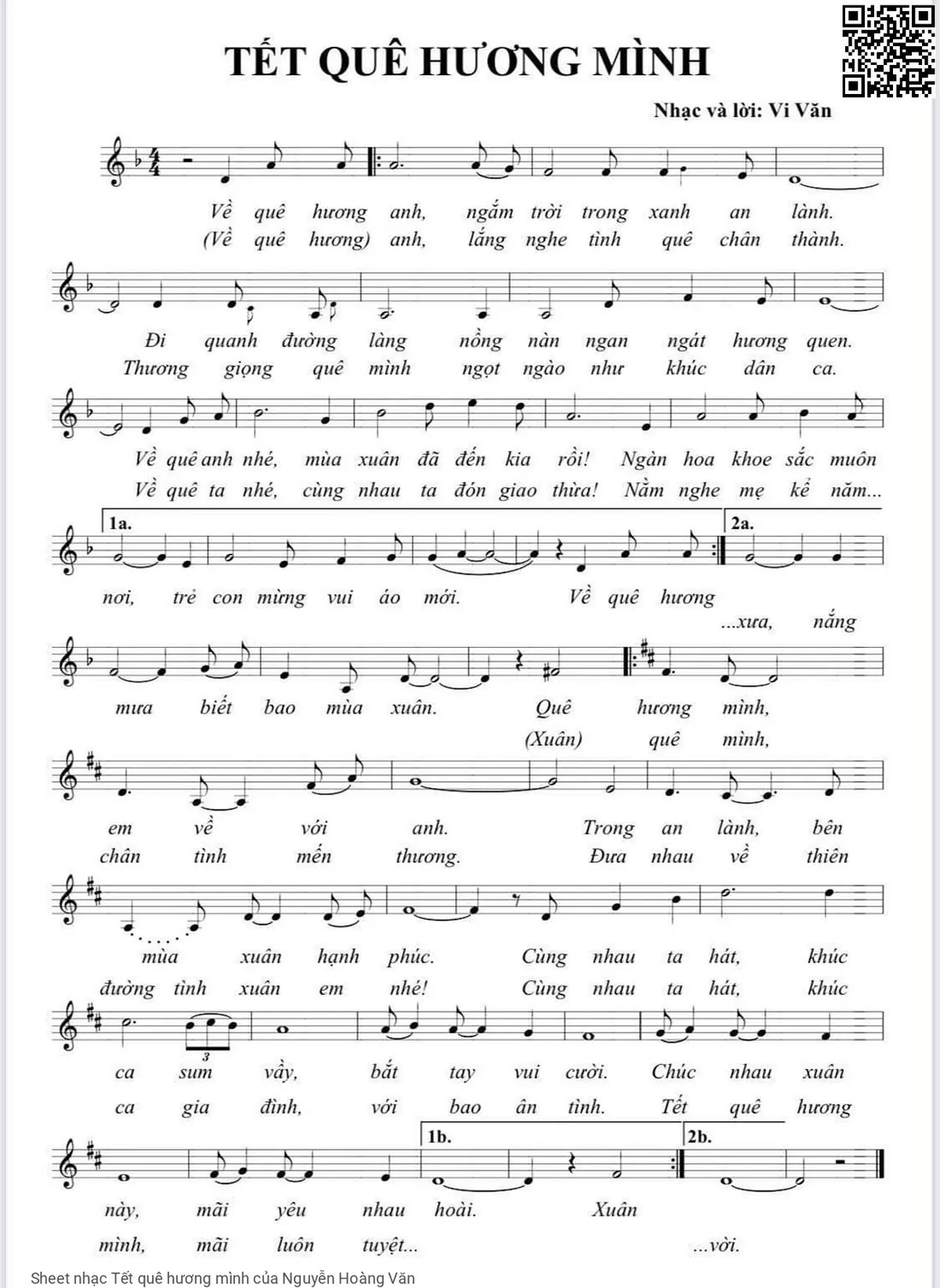 Phần nghe hát Tết quê hương mình (Nguyễn Hoàng Văn) được nhúng từ Youtube, Musescore hoặc link ngoài và chịu sự kiểm soát bản quyền của bên thứ ba đó, vì vậy có thể bị xóa hoặc chèn quảng cáo bất kỳ lúc nào. Nếu bạn không nghe - xem được ca sĩ hát tức là đã bị Youtube hoặc Musescore kiểm soát.