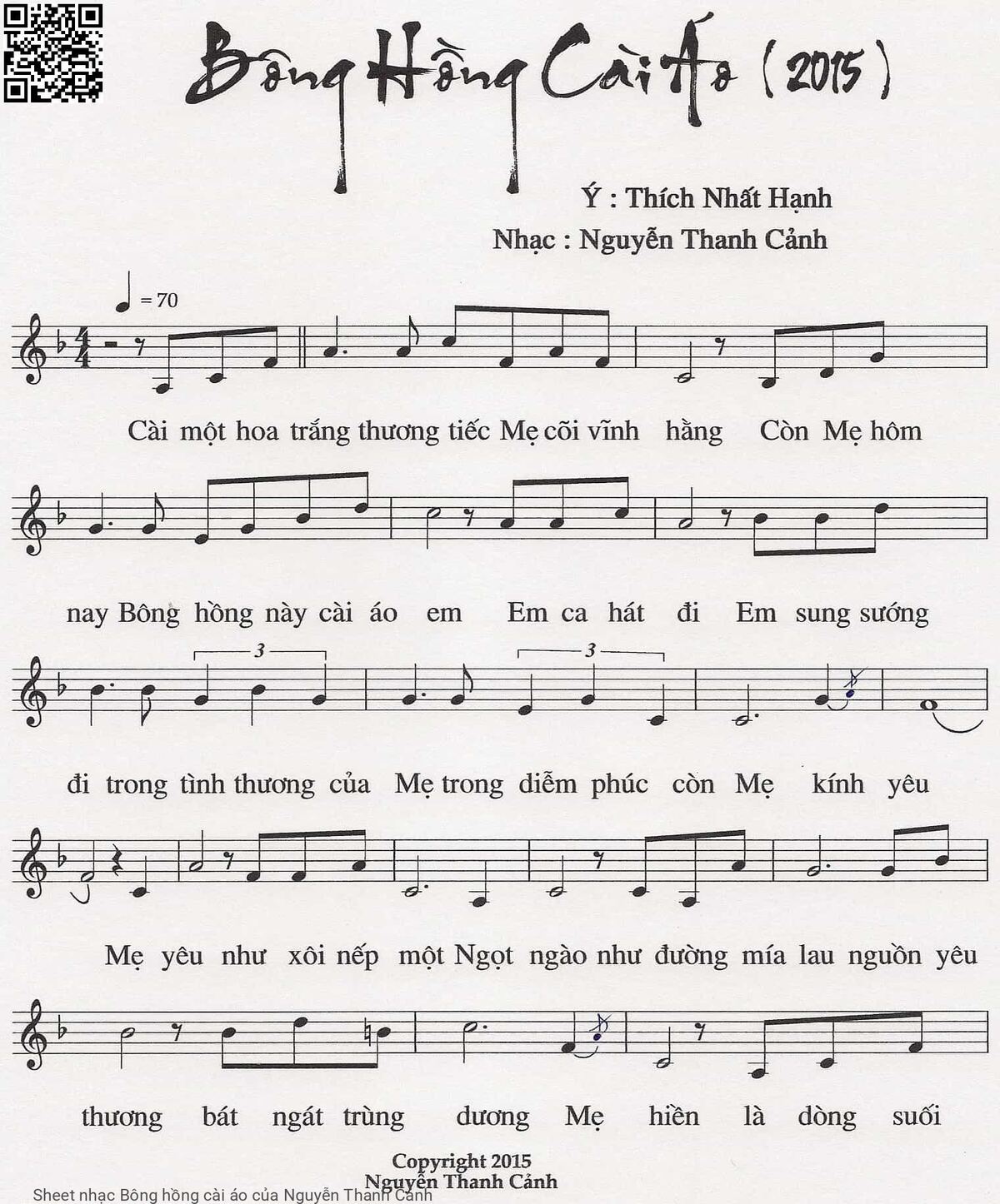 Nguyễn Thanh Cảnh Cài một hoa trắng thương tiếc mẹ cõi vĩnh hằng [PDF] [Sheet] [Lời H.A] [Mp4/Midi]