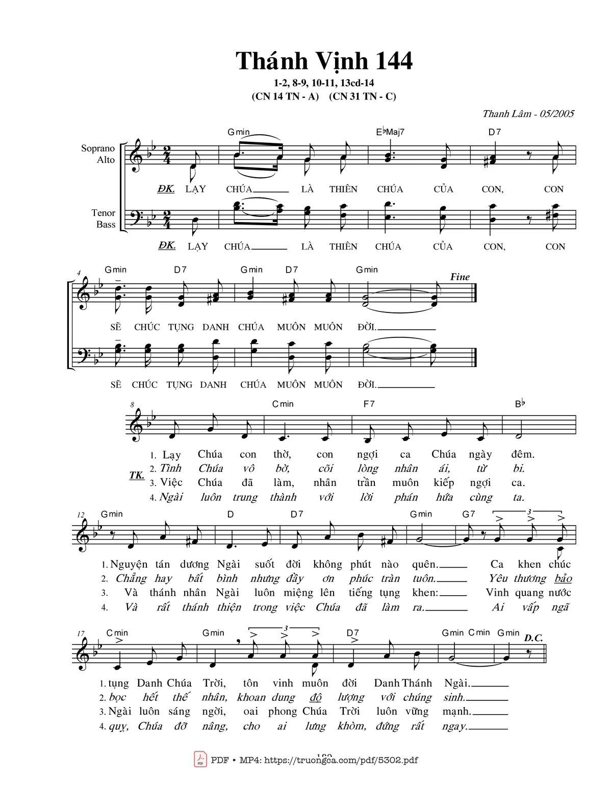 Các sheet PDF cùng tên Thánh vịnh 144: