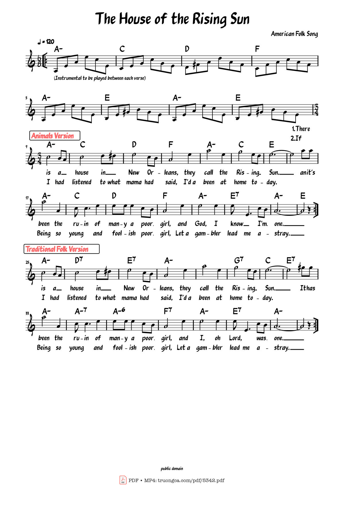 Traditional There is a house in New Or leans [PDF] [Sheet] [Lời H.A] [Mp4/Midi]