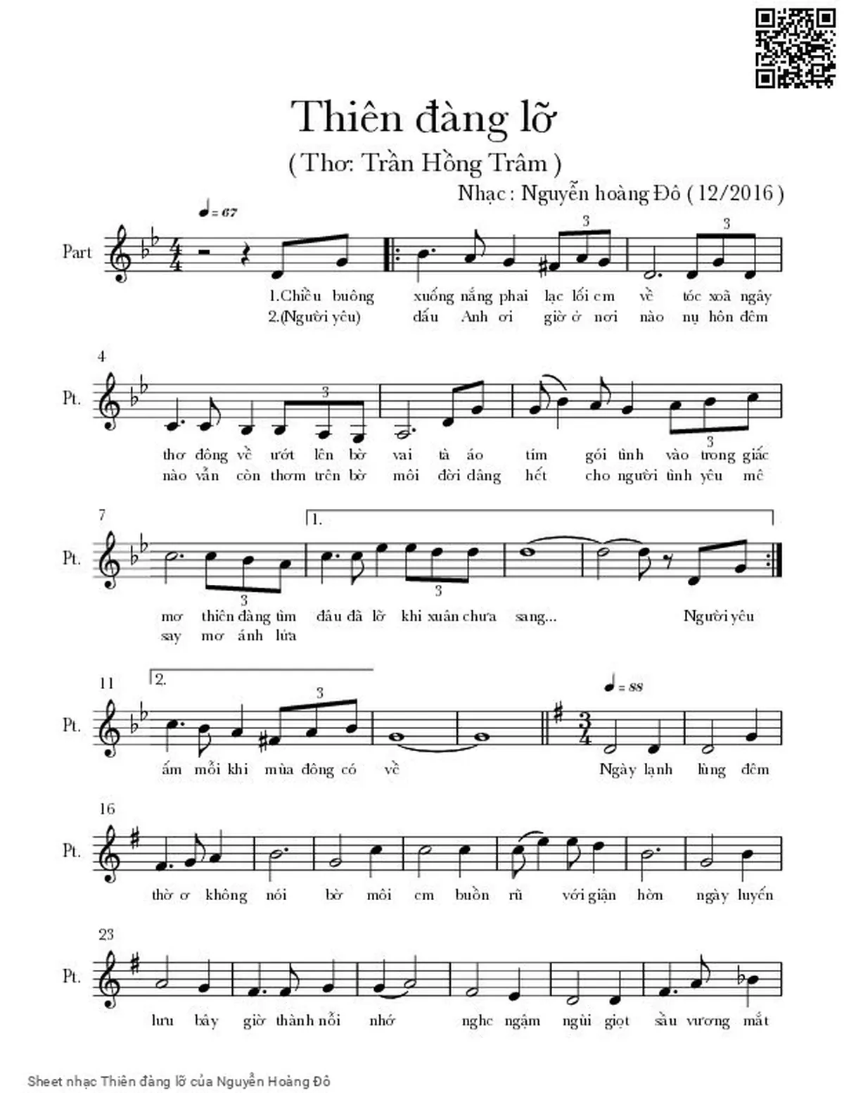 Phần nghe hát Thiên đàng lỡ (Nguyễn Hoàng Đô) được nhúng từ Youtube, Musescore hoặc link ngoài và chịu sự kiểm soát bản quyền của bên thứ ba đó, vì vậy có thể bị xóa hoặc chèn quảng cáo bất kỳ lúc nào. Nếu bạn không nghe - xem được ca sĩ hát tức là đã bị Youtube hoặc Musescore kiểm soát.