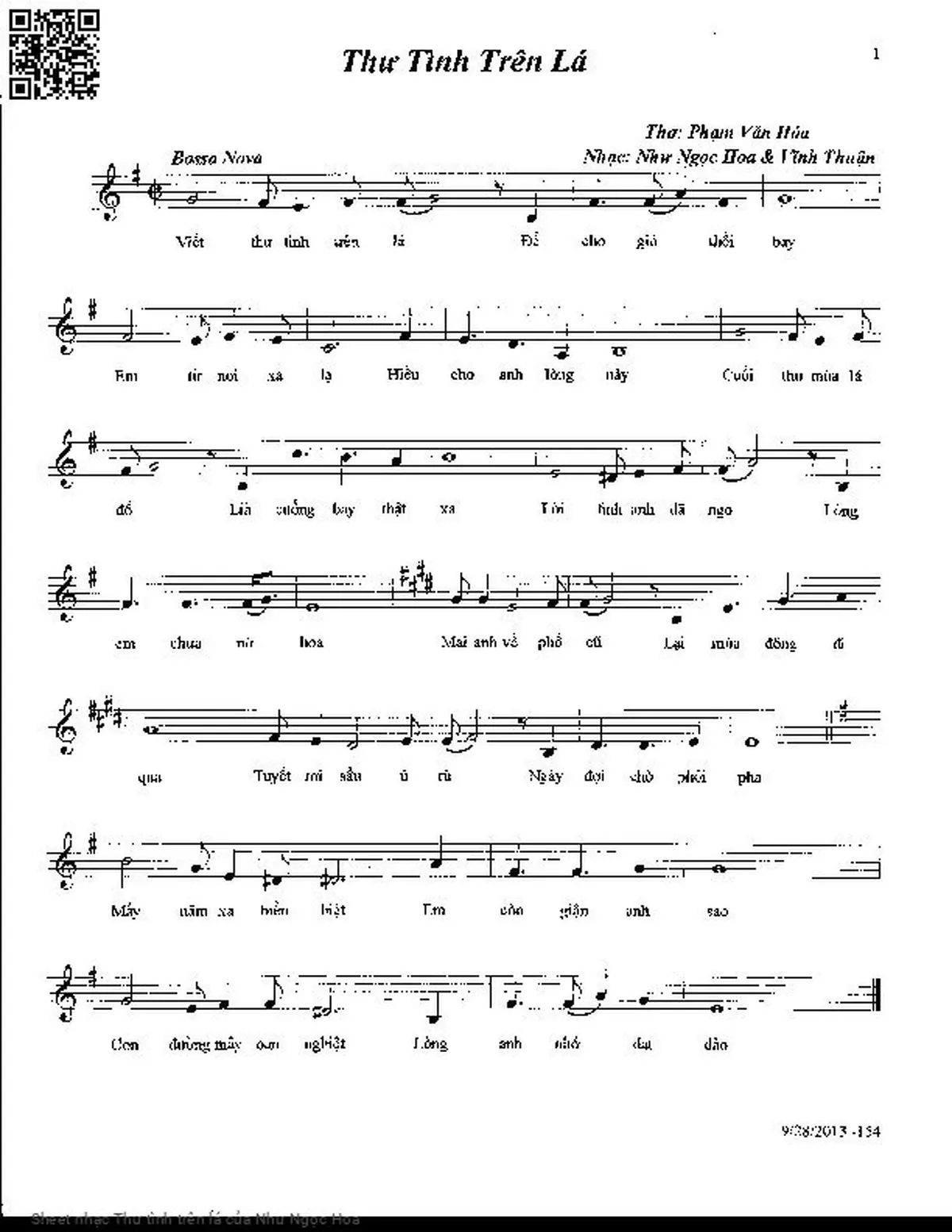 Như Ngọc Hoa Viết thư tình trên lá Để cho gió thổi bay [PDF] [Sheet] [Lời H.A] [Mp4/Midi]