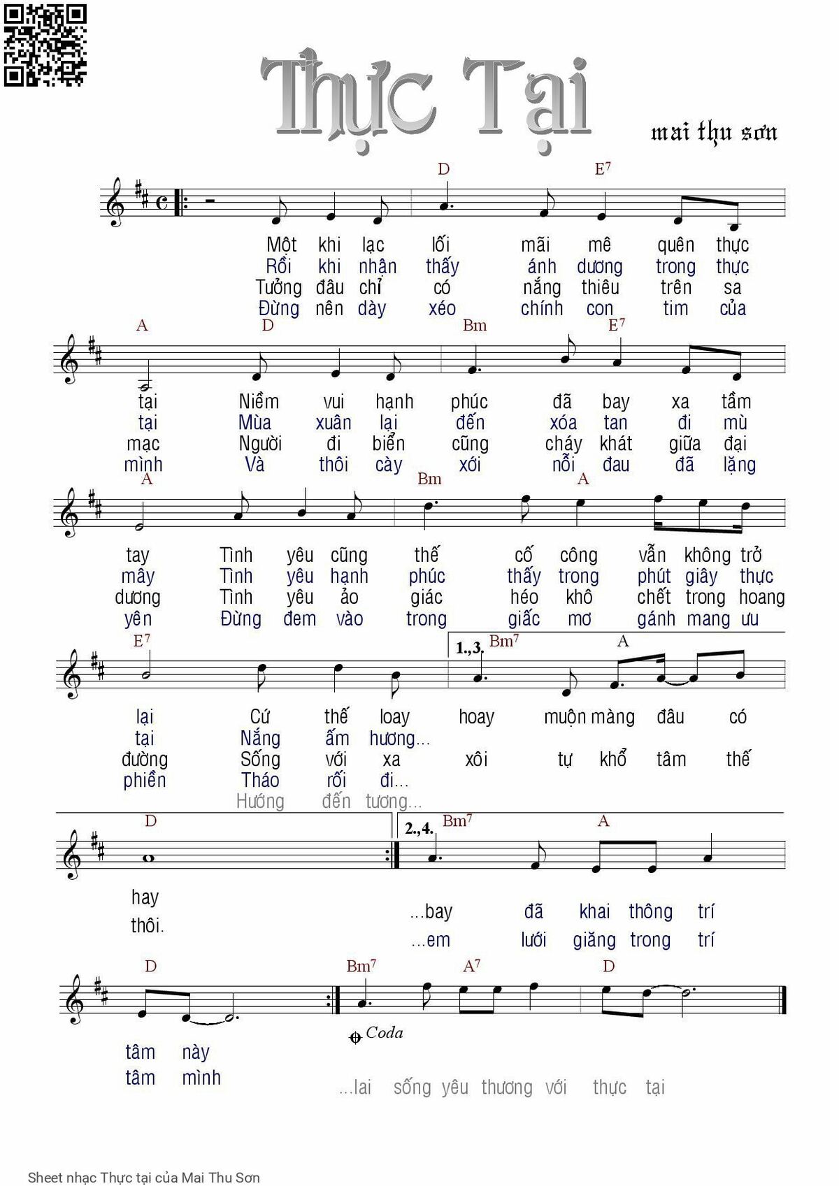 Mai Thu Sơn Một khi lạc lối mãi mê quên thực tại [PDF] [Sheet] [Lời H.A] [Mp4/Midi]