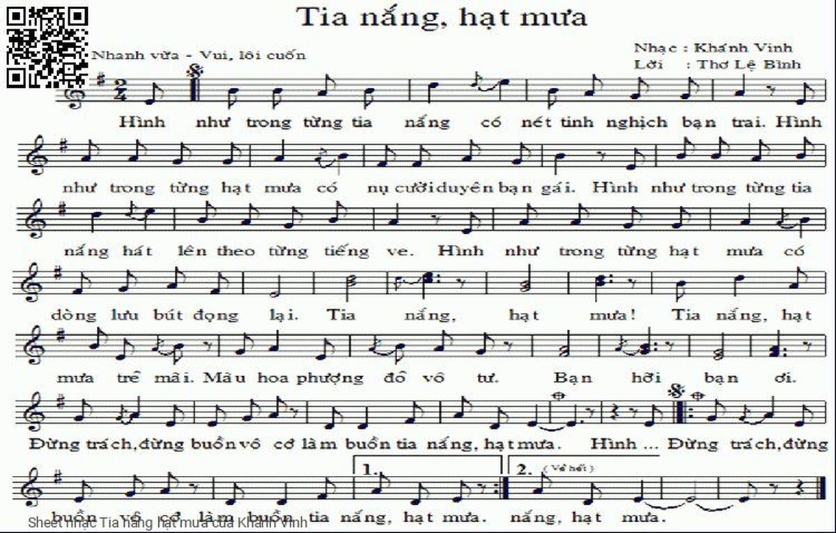 Khánh Vinh Hình như trong từng tia nắng có nét tinh nghịch bạn trai [PDF] [Sheet] [Lời H.A] [Mp4/Midi] [Lời bình - giai thoại]