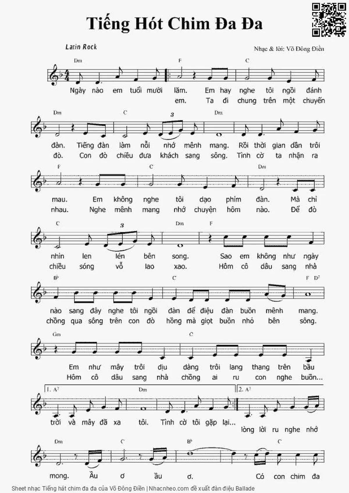Võ Đông Điền Ngày nào em tuổi mười lăm Em hay nghe tôi ngồi đánh đàn [PDF] [Sheet] [Lời H.A] [Mp4/Midi]