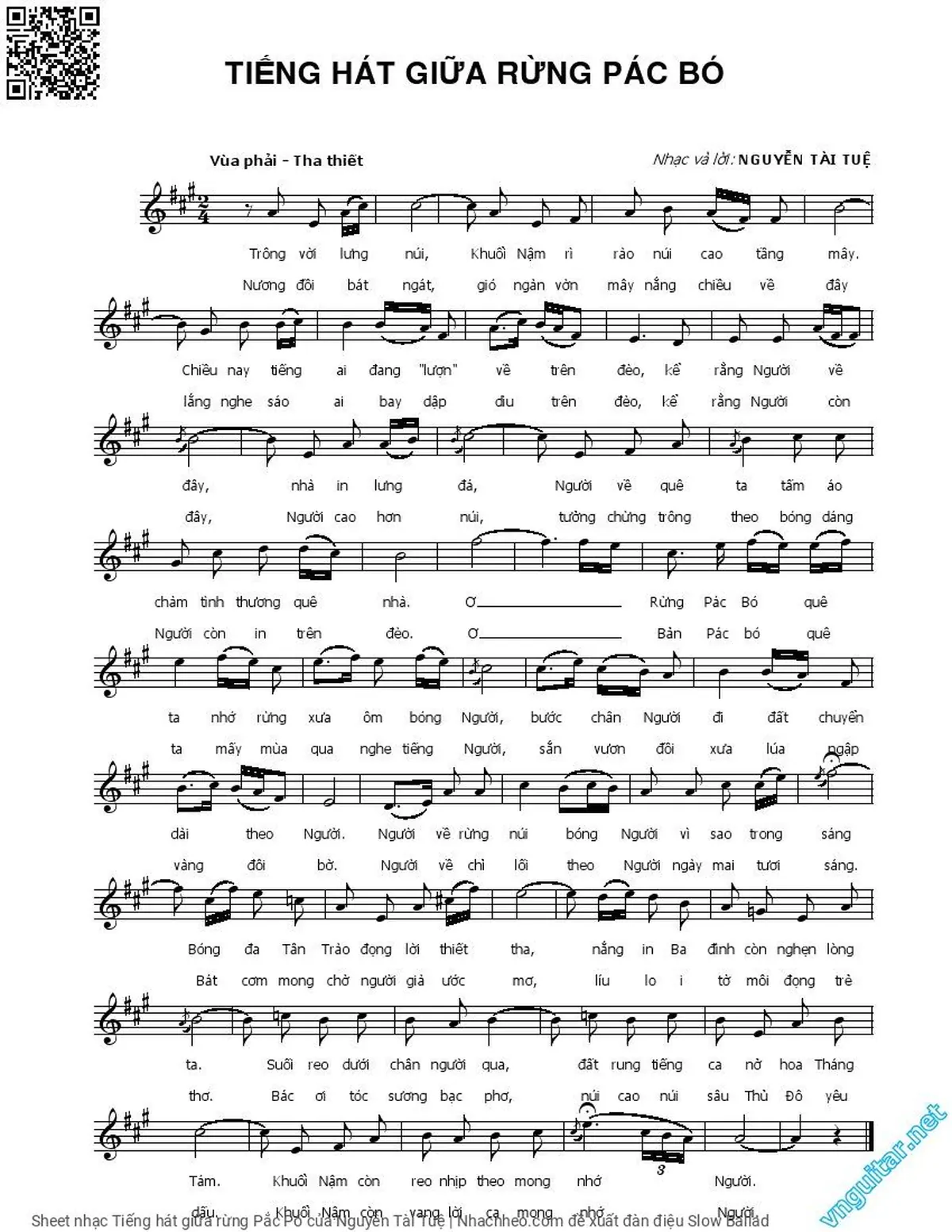 Nguyễn Tài Tuệ Trông vời lưng núi khuổi Nậm rì rào núi cao tầng mây [PDF] [Sheet] [Lời H.A] [Mp4/Midi]