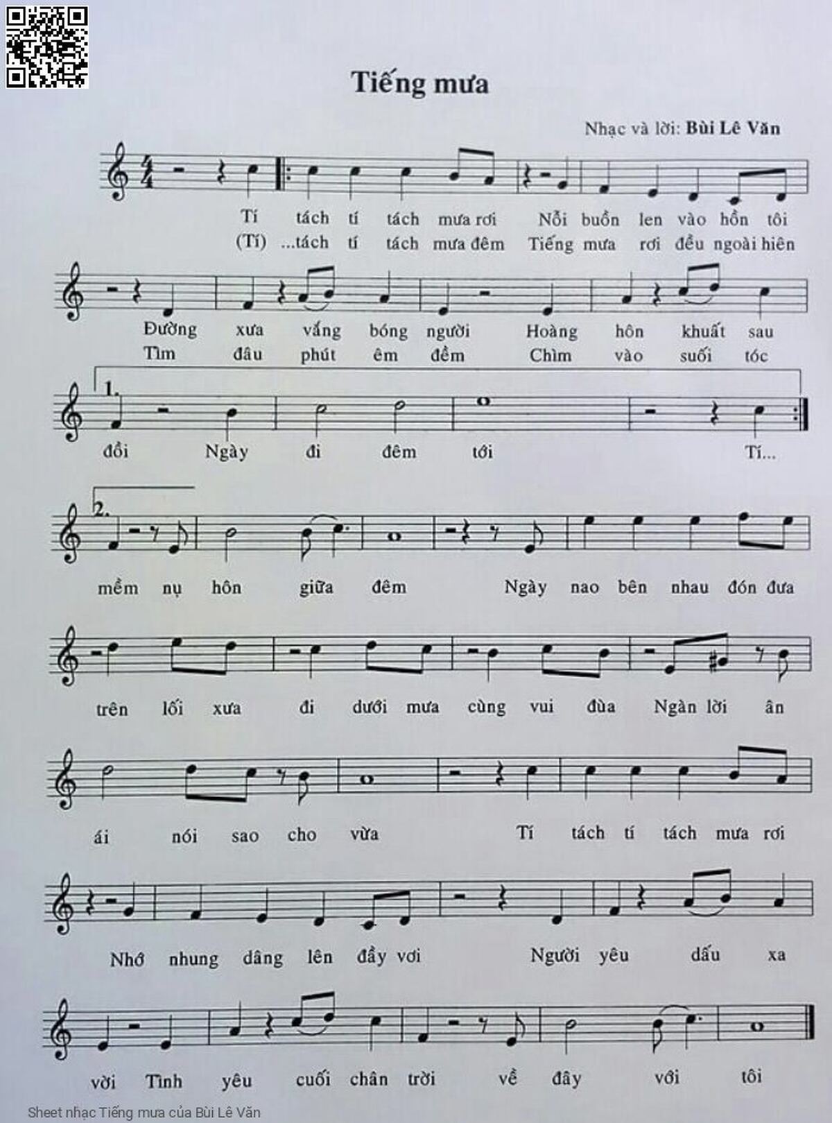 Bùi Lê Văn Tí tách tí tách mưa rơi Nỗi buồn len vào hồn tôi [PDF] [Sheet] [Lời H.A] [Mp4/Midi]