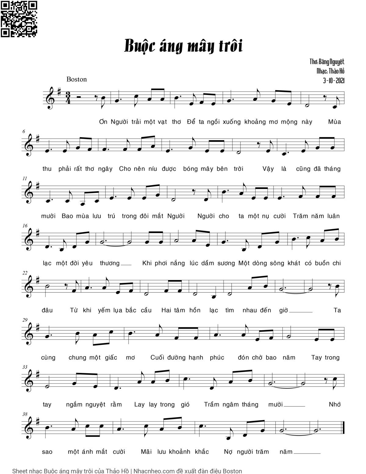 Phần nghe hát Buộc áng mây trôi (Thảo Hồ) được nhúng từ Youtube, Musescore hoặc link ngoài và chịu sự kiểm soát bản quyền của bên thứ ba đó, vì vậy có thể bị xóa hoặc chèn quảng cáo bất kỳ lúc nào. Nếu bạn không nghe - xem được ca sĩ hát tức là đã bị Youtube hoặc Musescore kiểm soát.