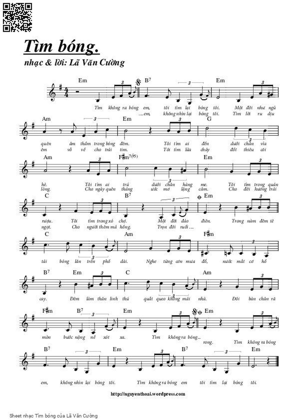 Lã Văn Cường Tìm không ra bóng em tôi tìm lại bóng tôi [PDF] [Sheet] [Lời H.A] [Mp4/Midi]