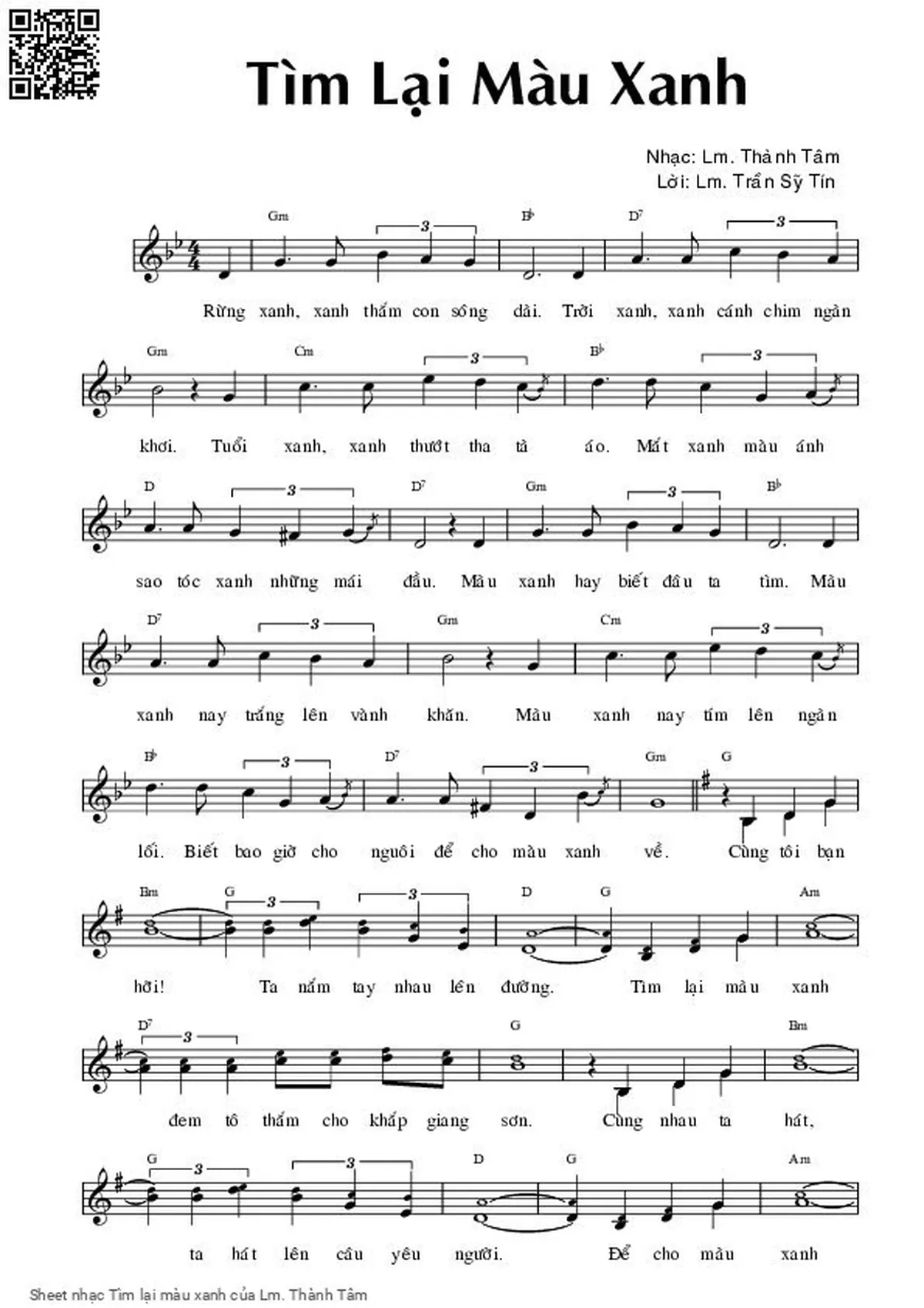 Lm. Thành Tâm Rừng xanh xanh thẫm con sông dài [PDF] [Sheet] [Lời H.A] [Mp4/Midi]