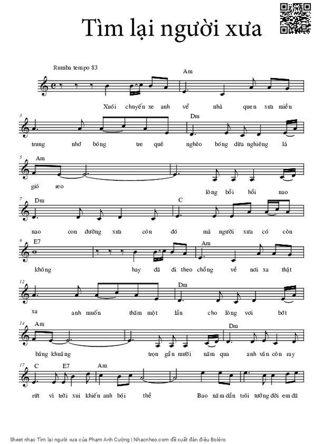 Phần nghe hát Tìm lại người xưa (Phạm Anh Cường) được nhúng từ Youtube, Musescore hoặc link ngoài và chịu sự kiểm soát bản quyền của bên thứ ba đó, vì vậy có thể bị xóa hoặc chèn quảng cáo bất kỳ lúc nào. Nếu bạn không nghe - xem được ca sĩ hát tức là đã bị Youtube hoặc Musescore kiểm soát.