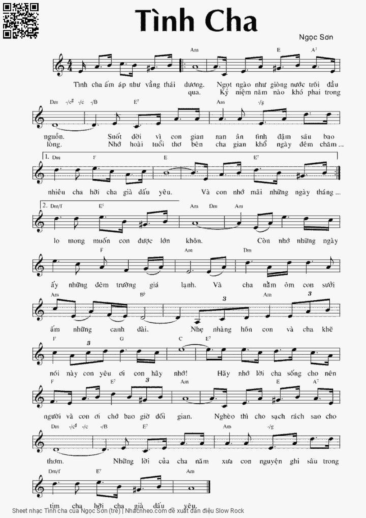 Ngọc Sơn (trẻ) Tình cha ấm áp như vầng thái dương Ngọt ngào như dòng nước trôi đầu nguồn [PDF] [Sheet] [Lời H.A] [Mp4/Midi] [Lời bình - giai thoại]