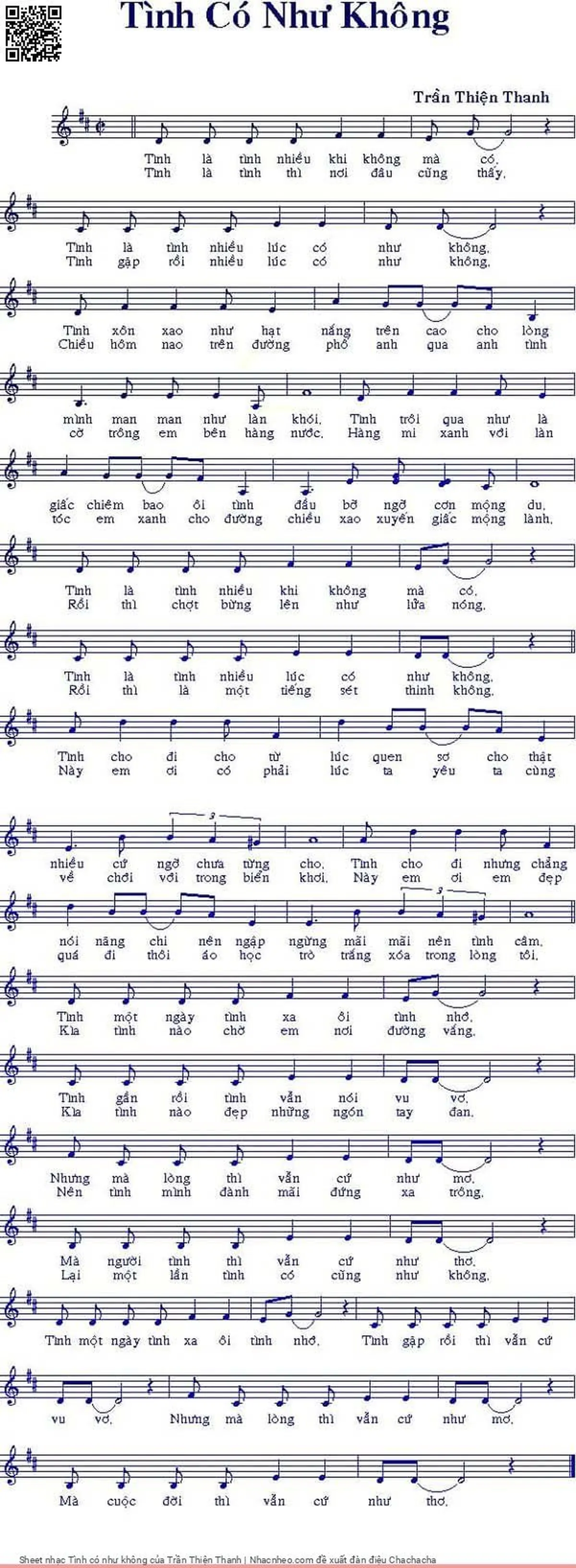Trần Thiện Thanh Tình là tình nhiều khi không mà có Tình là tình nhiều lúc có như không [PDF] [Sheet] [Lời H.A] [Mp4/Midi]