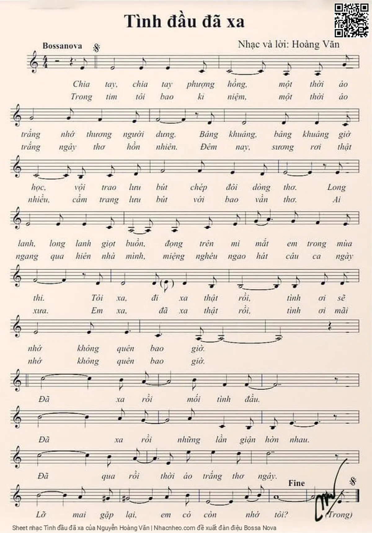 Nguyễn Hoàng Văn Chia tay chia tay phượng hồng [PDF] [Sheet] [Lời H.A] [Mp4/Midi]
