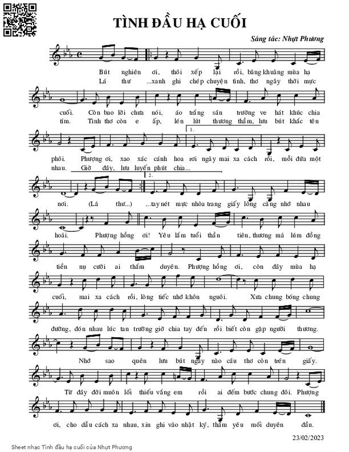 Nhựt Phương Bút nghiên ơi thôi xếp lại rồi bâng khuâng mùa hạ cuối [PDF] [Sheet] [Lời H.A] [Mp4/Midi]