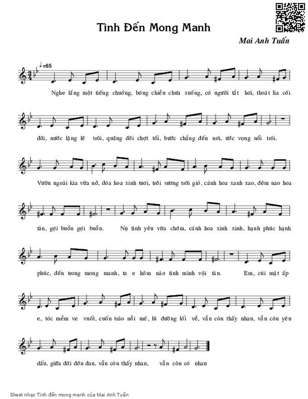Phần nghe hát Tình đến mong manh (Mai Anh Tuấn) được nhúng từ Youtube, Musescore hoặc link ngoài và chịu sự kiểm soát bản quyền của bên thứ ba đó, vì vậy có thể bị xóa hoặc chèn quảng cáo bất kỳ lúc nào. Nếu bạn không nghe - xem được ca sĩ hát tức là đã bị Youtube hoặc Musescore kiểm soát.