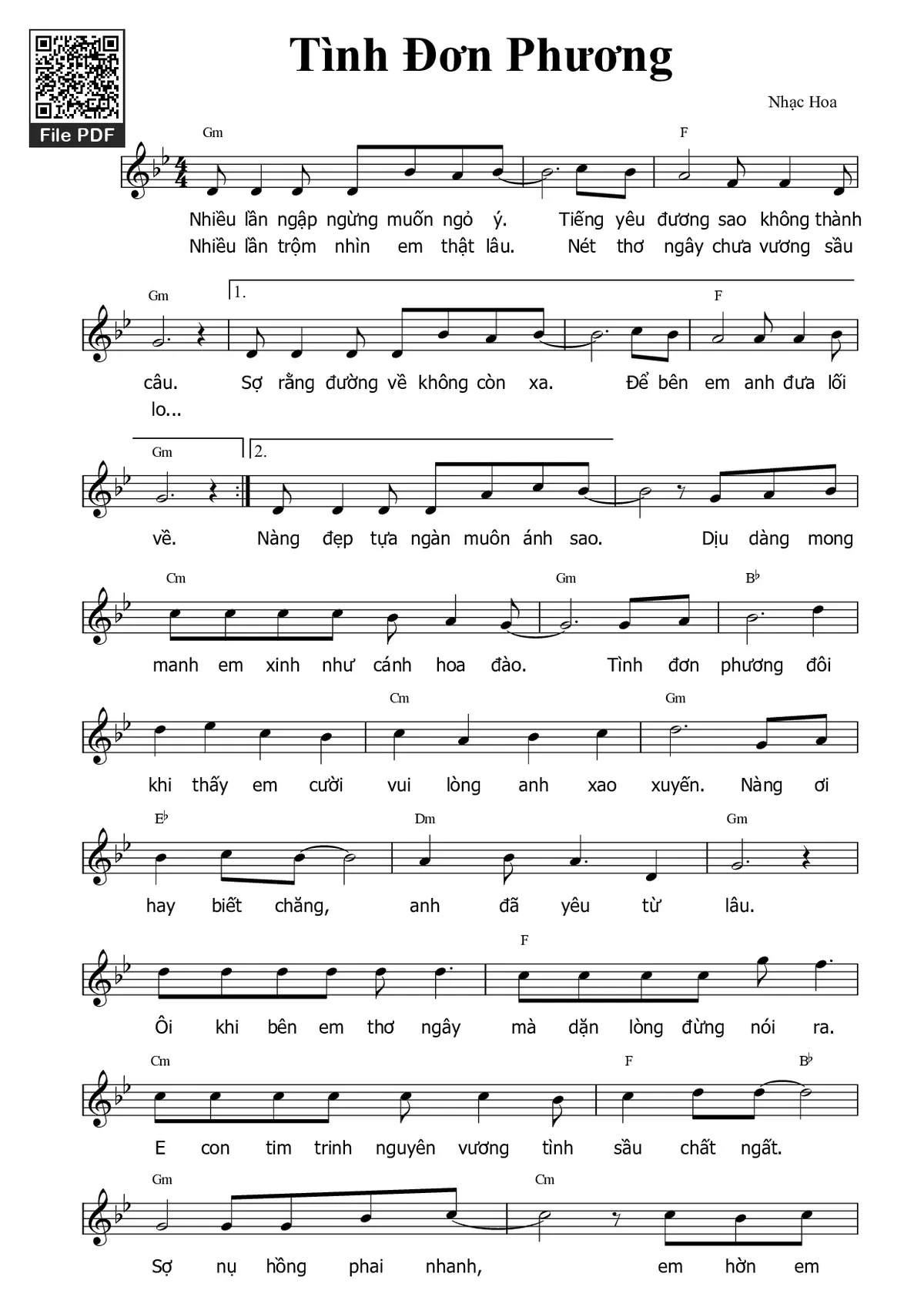 Nhạc Hoa Nhiều lần ngập ngừng muốn ngỏ ý [PDF] [Sheet] [Lời H.A] [Mp4/Midi]