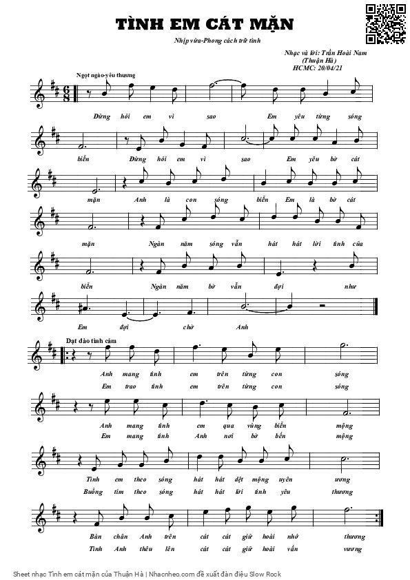 Thuận Hà Đừng hỏi em vì sao em yêu từng sóng biển [PDF] [Sheet] [Lời H.A] [Mp4/Midi]