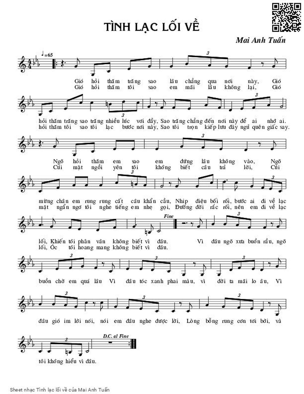 Phần nghe hát Tình lạc lối về (Mai Anh Tuấn) được nhúng từ Youtube, Musescore hoặc link ngoài và chịu sự kiểm soát bản quyền của bên thứ ba đó, vì vậy có thể bị xóa hoặc chèn quảng cáo bất kỳ lúc nào. Nếu bạn không nghe - xem được ca sĩ hát tức là đã bị Youtube hoặc Musescore kiểm soát.