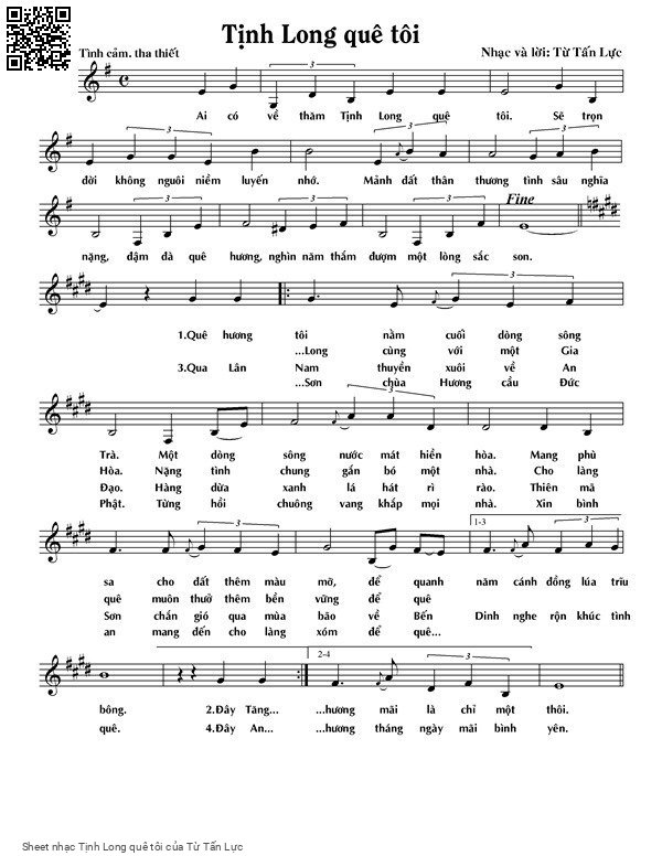 Từ Tấn Lực Ai có về thăm Tịnh Long quê tôi Sẽ trọn đời không nguồi niềm luyến nhớ [PDF] [Sheet] [Lời H.A] [Mp4/Midi]