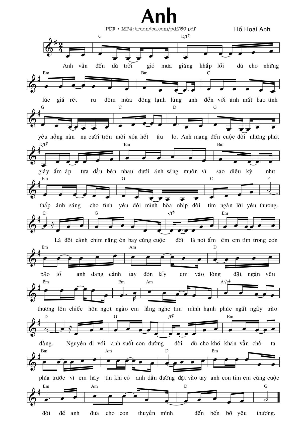 Nguyễn Hoài Anh Anh vẫn đến dù trời gió mưa giăng khắp lối [PDF] [Sheet] [Lời H.A] [Mp4/Midi]