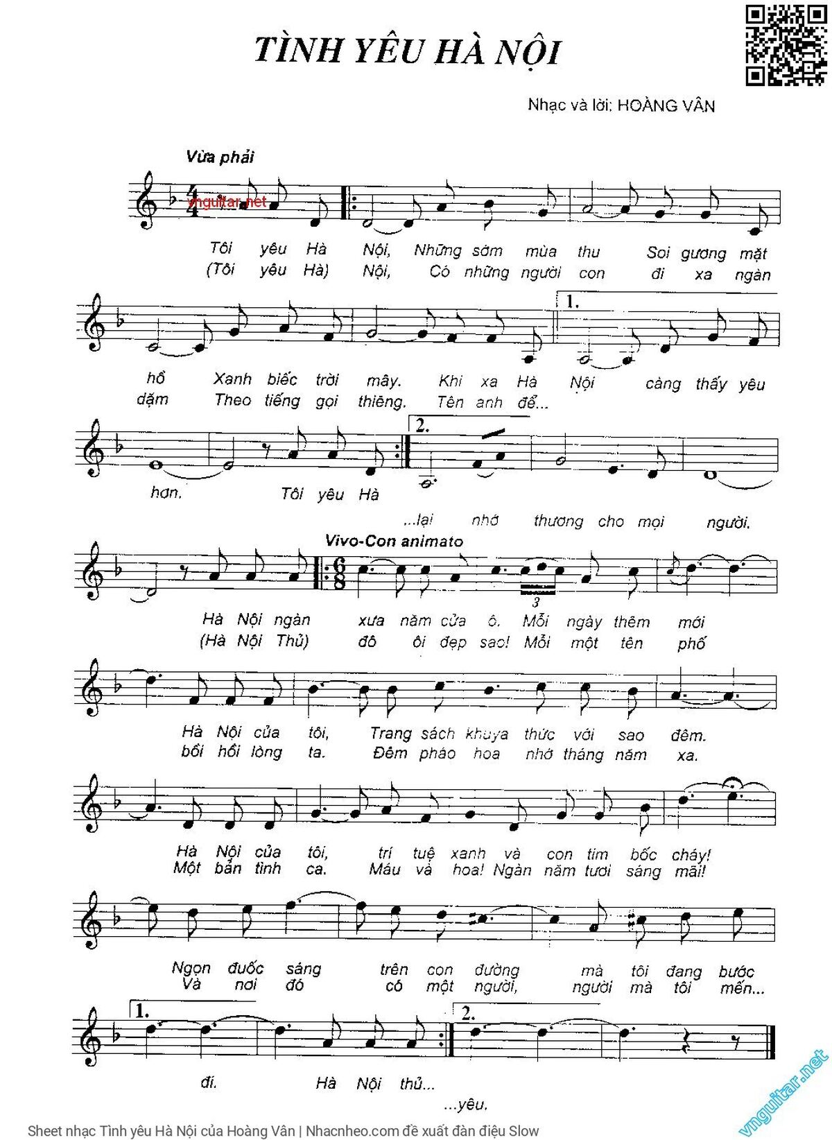Hoàng Vân Tôi yêu Hà Nội những sớm mùa thu Soi gương mặt hồ [PDF] [Sheet] [Lời H.A] [Mp4/Midi]