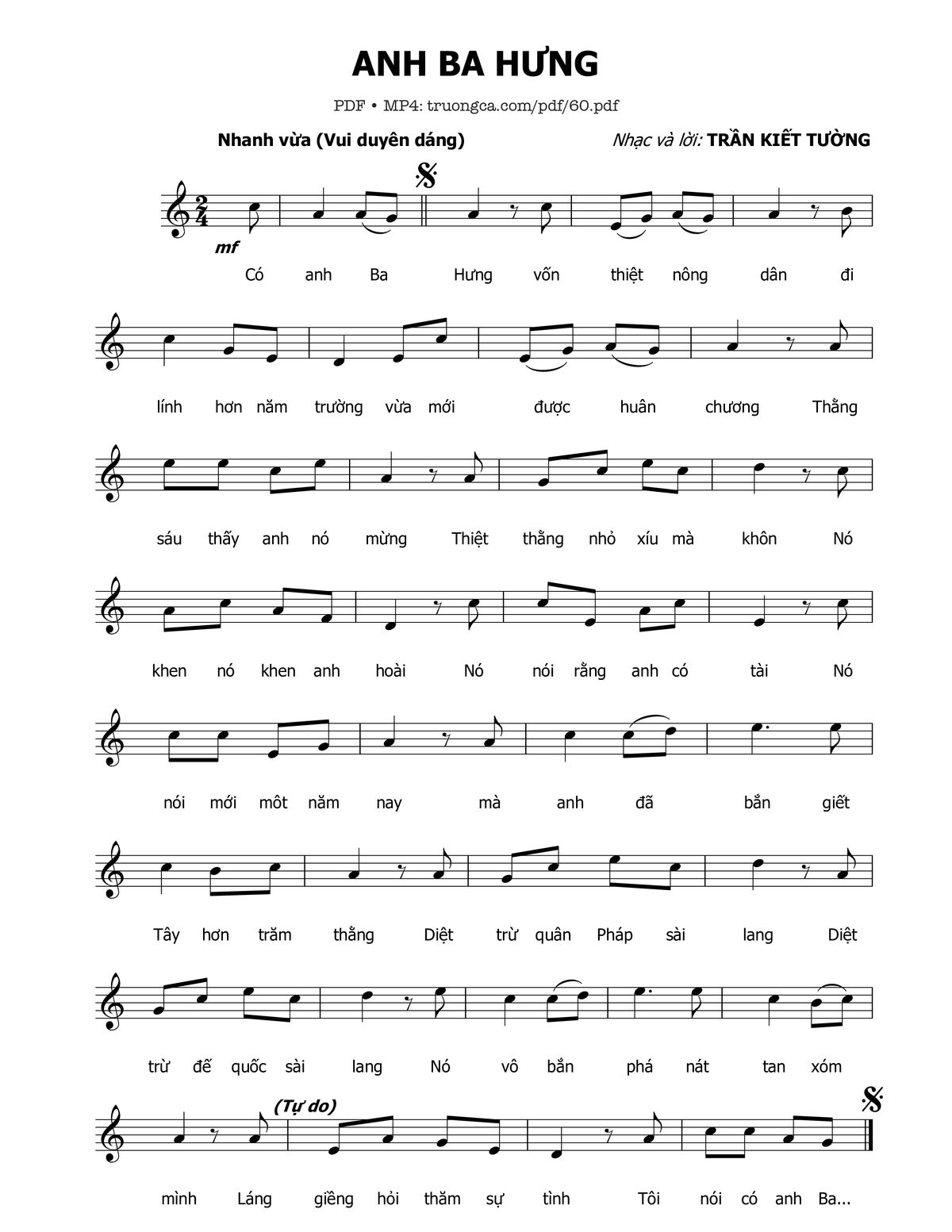 Trần Kiết Tường Có anh Ba Hưng Vốn thiệt nông dân Đi lính hơn năm trường [PDF] [Sheet] [Lời H.A] [Mp4/Midi] [Lời bình - giai thoại]