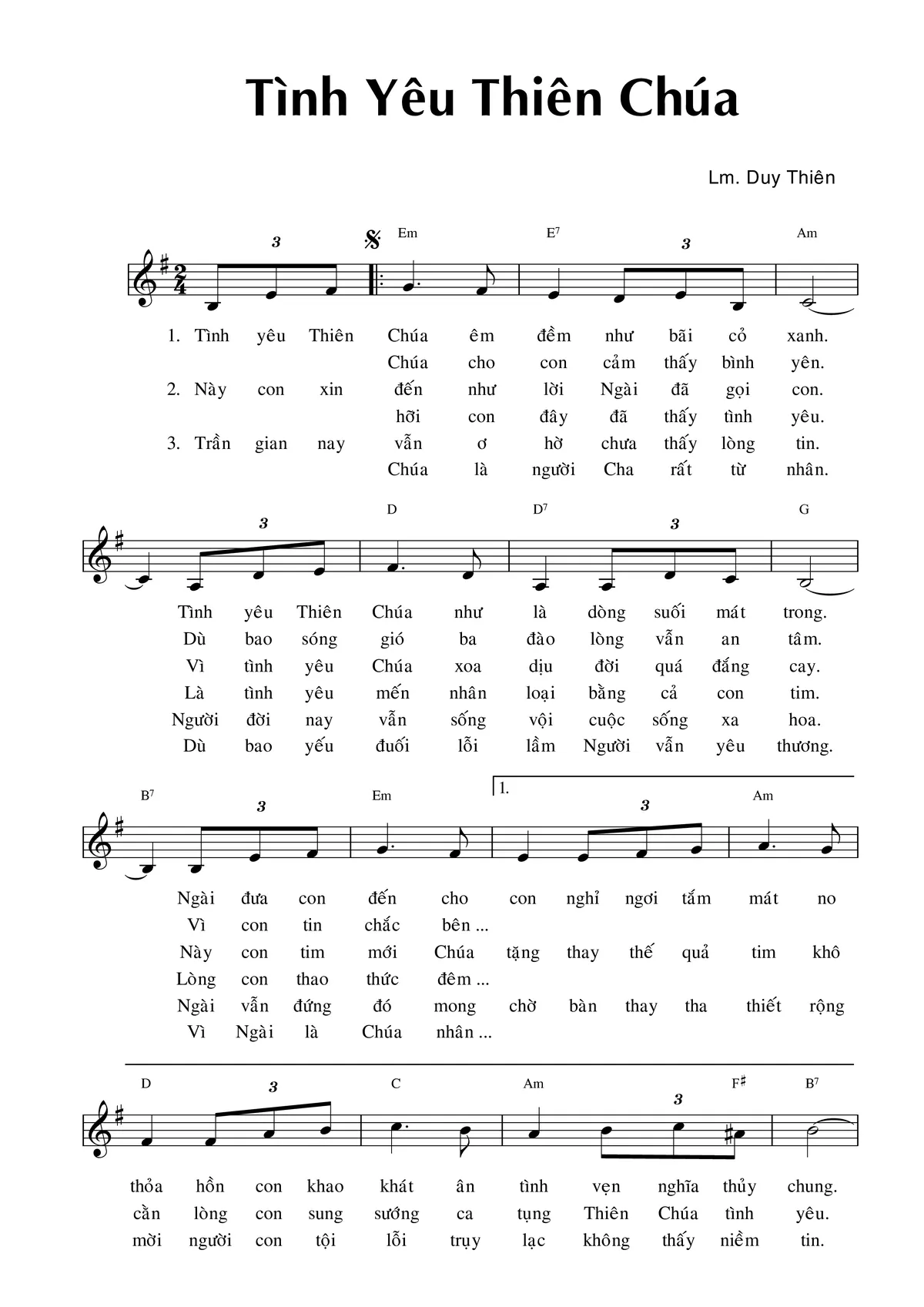 Lm. Duy Thiên Tình yêu Thiên Chúa êm đềm như bãi cỏ xanh [PDF] [Sheet] [Lời H.A] [Mp4/Midi]