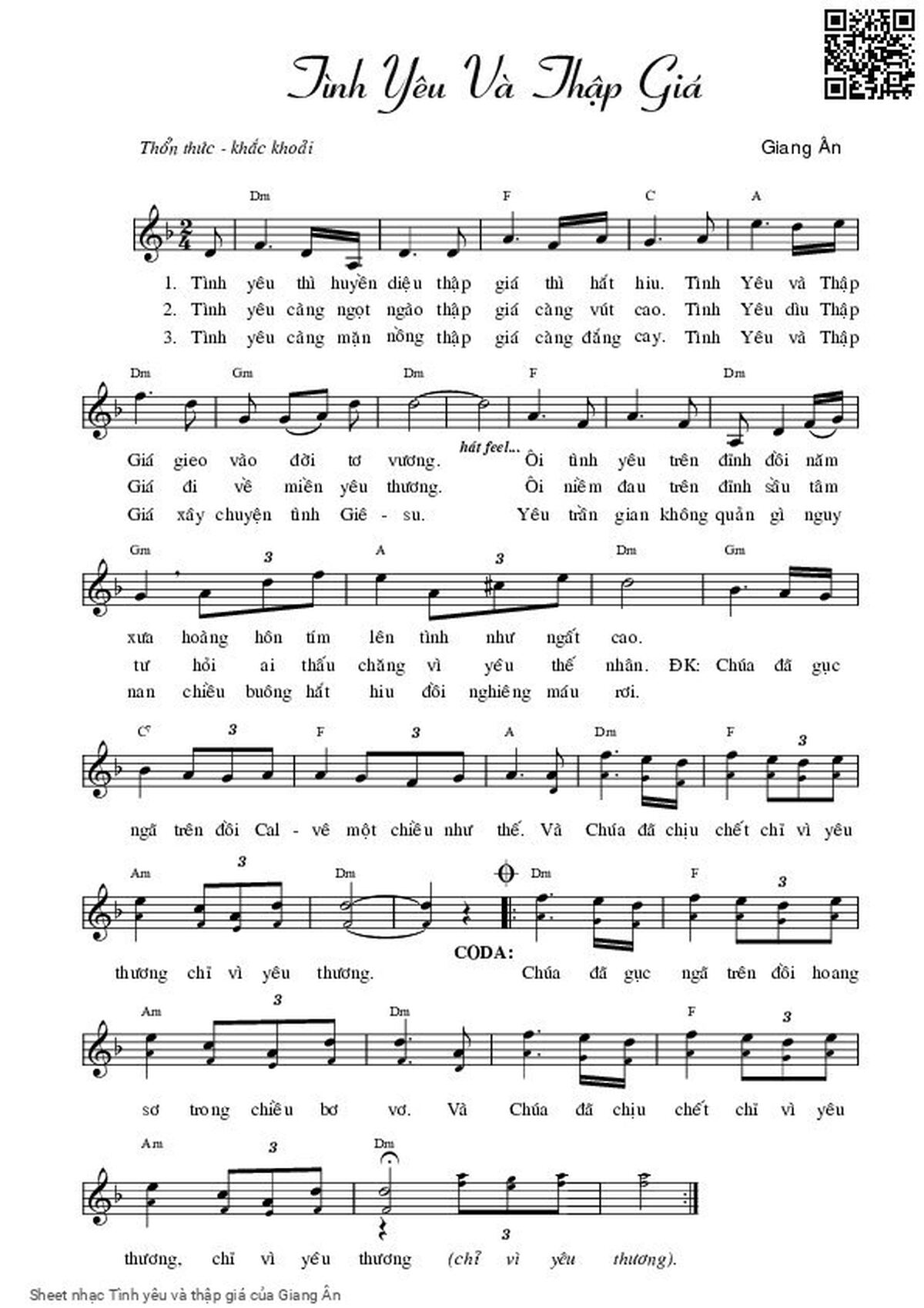 Giang Ân Tình yêu thì huyền diệu Thập giá thì hắt hiu [PDF] [Sheet] [Lời H.A] [Mp4/Midi]