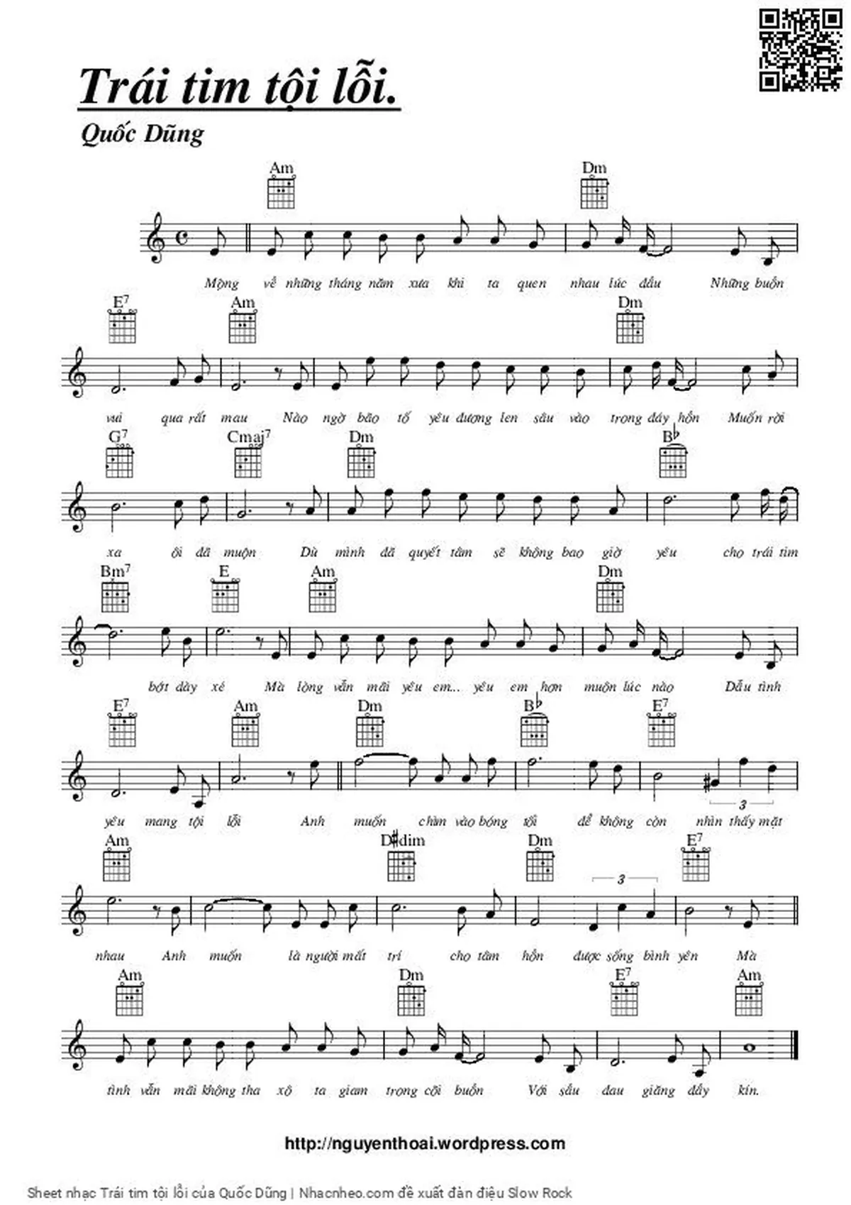 Phần nghe hát Trái tim tội lỗi (Quốc Dũng) được nhúng từ Youtube, Musescore hoặc link ngoài và chịu sự kiểm soát bản quyền của bên thứ ba đó, vì vậy có thể bị xóa hoặc chèn quảng cáo bất kỳ lúc nào. Nếu bạn không nghe - xem được ca sĩ hát tức là đã bị Youtube hoặc Musescore kiểm soát.