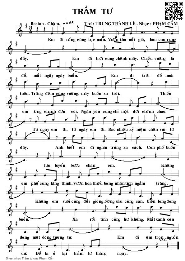 Phạm Cẩm Em đi nắng cũng bạc màu Vườn thu nổi gió hoa cau rụng đầy [PDF] [Sheet] [Lời H.A] [Mp4/Midi]