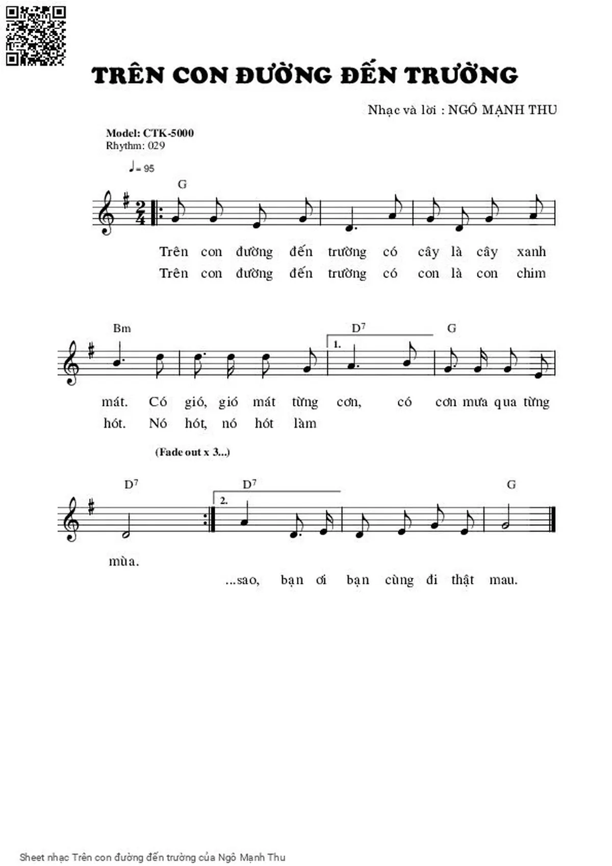 Chọn nút dấu + để tăng tông lên nửa cung, nút dấu - để giảm tông xuống nửa cung. Rê chuột vào hợp âm để xem các thế bấm hợp âm của bài hát Trên con đường đến trường.