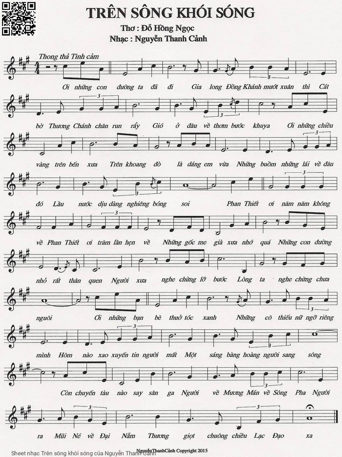 Chọn nút dấu + để tăng tông lên nửa cung, nút dấu - để giảm tông xuống nửa cung. Rê chuột vào hợp âm để xem các thế bấm hợp âm của bài hát Trên sông khói sóng.