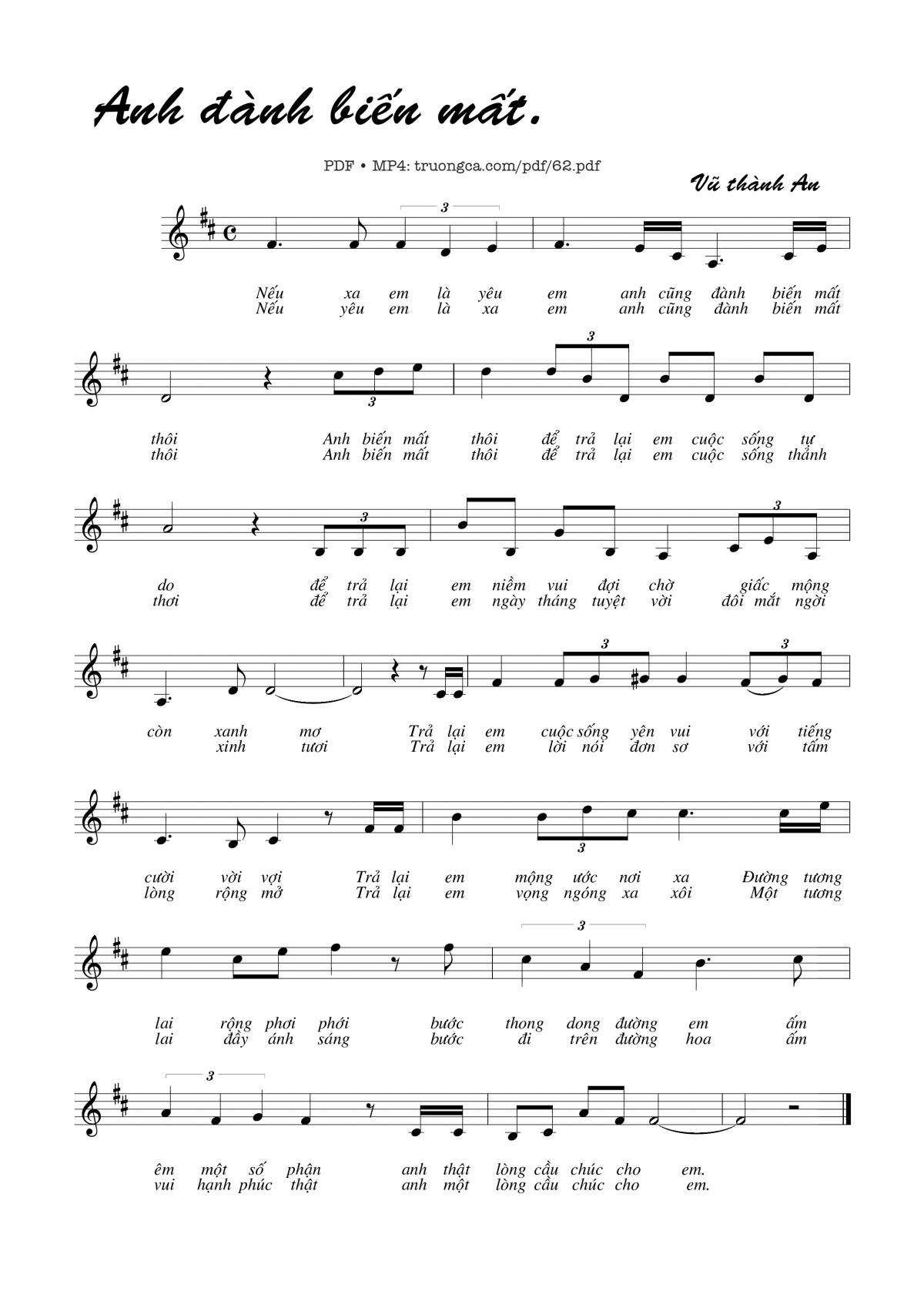 Chọn nút dấu + để tăng tông lên nửa cung, nút dấu - để giảm tông xuống nửa cung. Rê chuột vào hợp âm để xem các thế bấm hợp âm của bài hát Anh biến mất thôi.