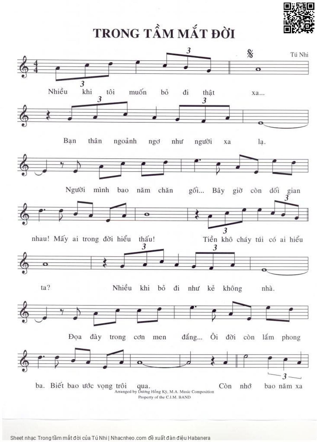 Tú Nhi Nhiều khi tôi muốn bỏ đi thật xa Bạn thân ngoảnh ngơ như người xa lạ [PDF] [Sheet] [Lời H.A] [Mp4/Midi] [Lời bình - giai thoại]