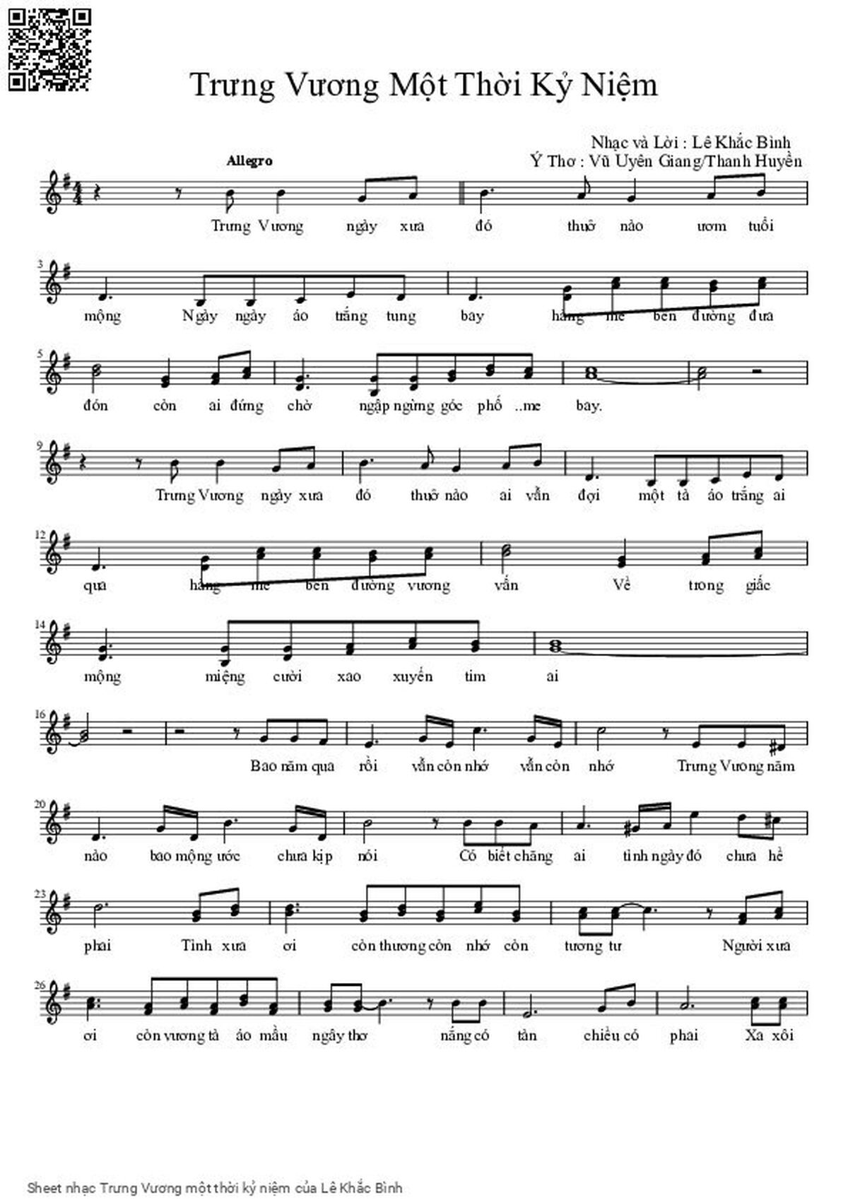 Lê Khắc Bình Trưng Vương ngày xưa đó Thuở nào ươm tuổi mộng [PDF] [Sheet] [Lời H.A] [Mp4/Midi]