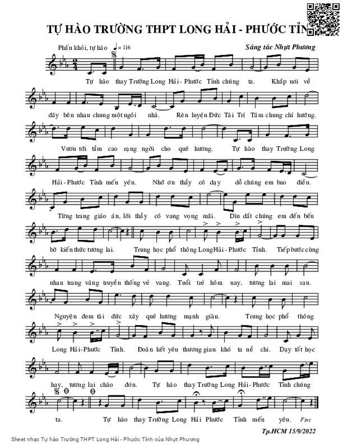 Nhựt Phương Tự hào thay Trường Long Hải Phước Tỉnh chúng ta [PDF] [Sheet] [Lời H.A] [Mp4/Midi]
