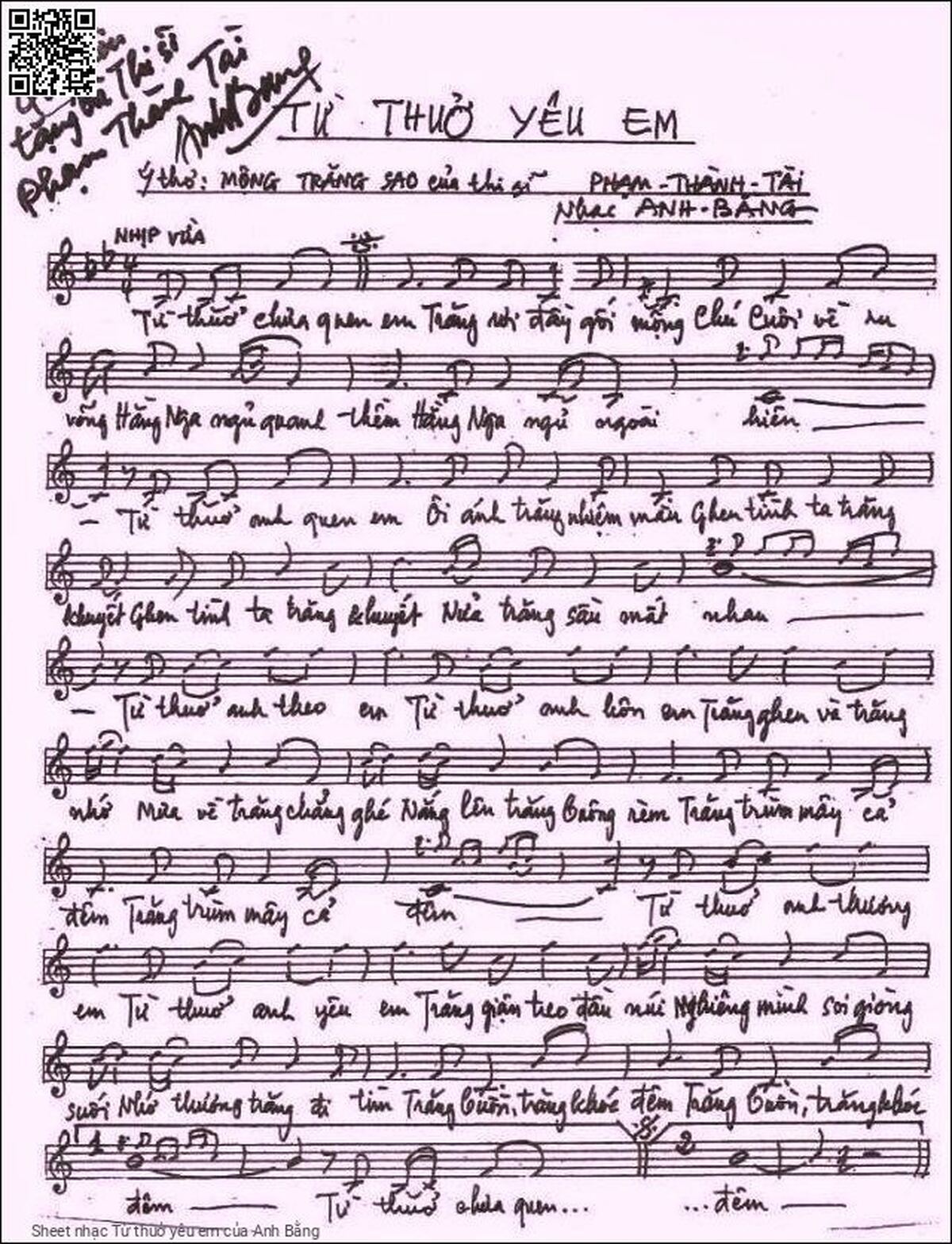 Anh Bằng Từ thuở chưa quen em Trăng rơi đầy gối mộng [PDF] [Sheet] [Lời H.A] [Mp4/Midi]
