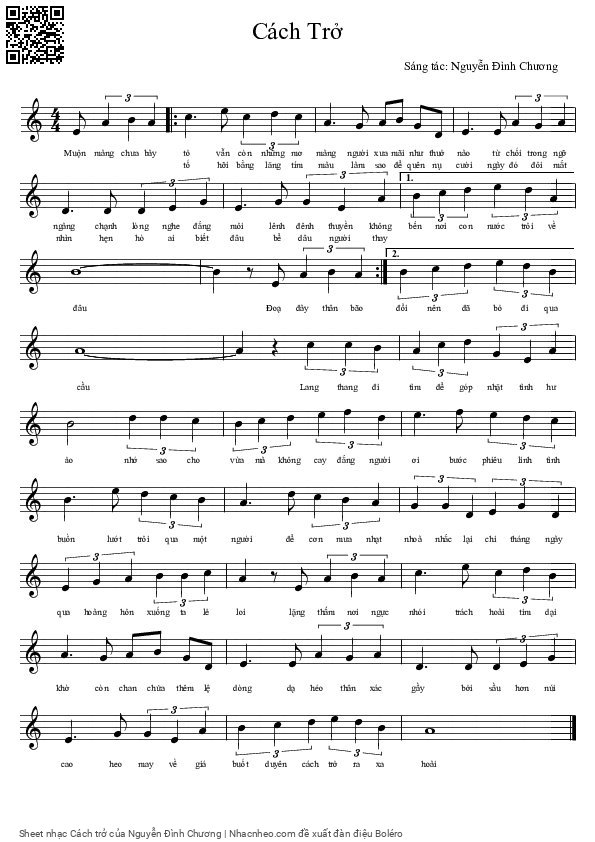 Phần nghe hát Cách trở (Nguyễn Đình Chương) được nhúng từ Youtube, Musescore hoặc link ngoài và chịu sự kiểm soát bản quyền của bên thứ ba đó, vì vậy có thể bị xóa hoặc chèn quảng cáo bất kỳ lúc nào. Nếu bạn không nghe - xem được ca sĩ hát tức là đã bị Youtube hoặc Musescore kiểm soát.