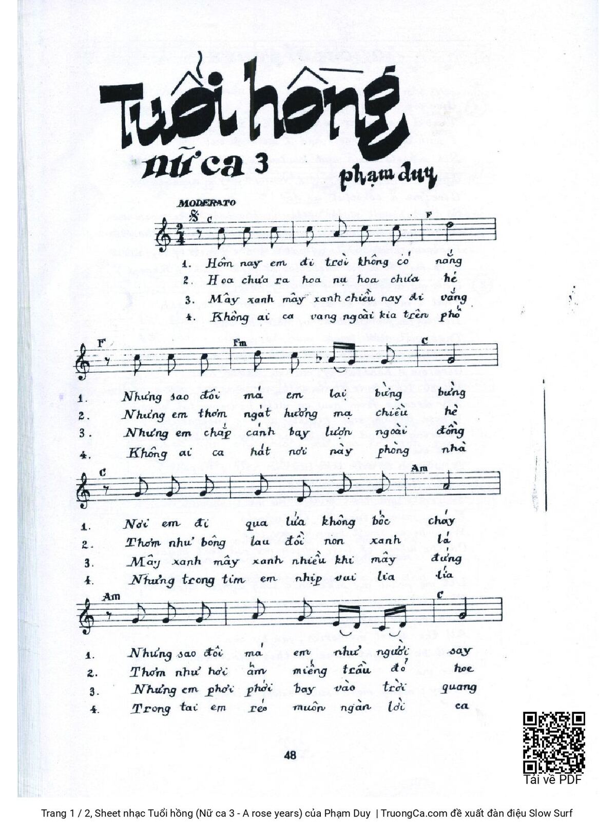Phạm Duy Hôm nay em đi trời không có nắng Nhưng sao đôi má em lại bừng bừng [PDF] [Sheet] [Lời H.A] [Mp4/Midi]