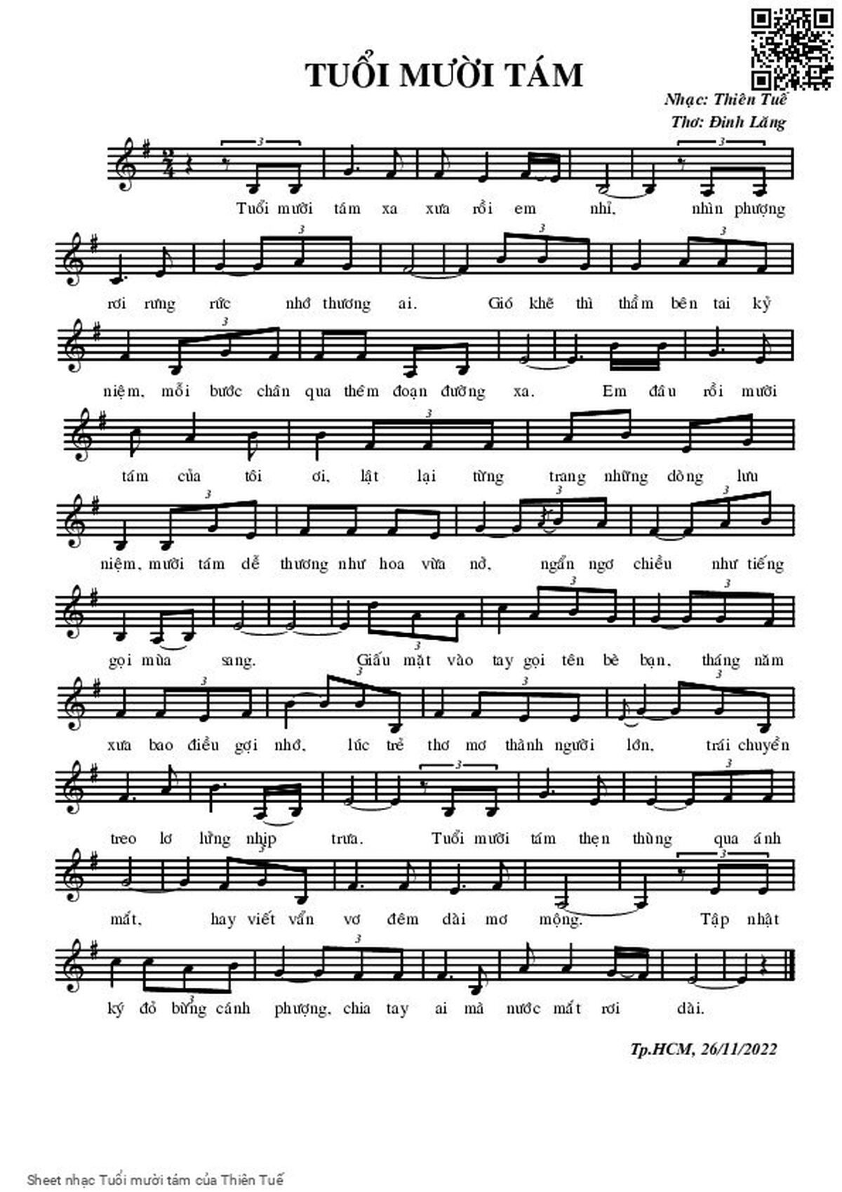 Thiên Tuế Tuổi mười tám xa xưa rồi em nhỉ Nhìn phượng rơi rưng rức nhớ thương ai [PDF] [Sheet] [Lời H.A] [Mp4/Midi]