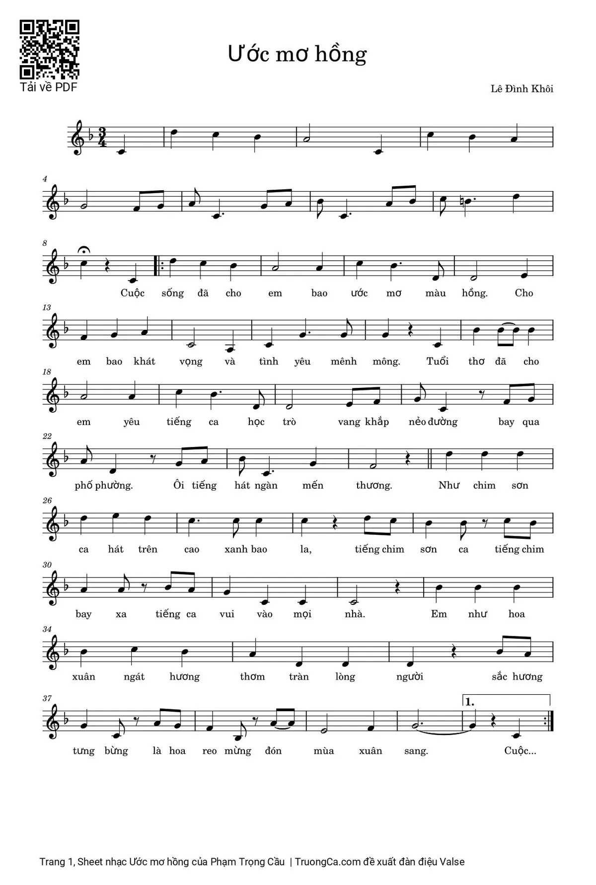 Phạm Trọng Cầu Cuộc sống đã cho em bao ước mơ màu hồng [PDF] [Sheet] [Lời H.A] [Mp4/Midi]