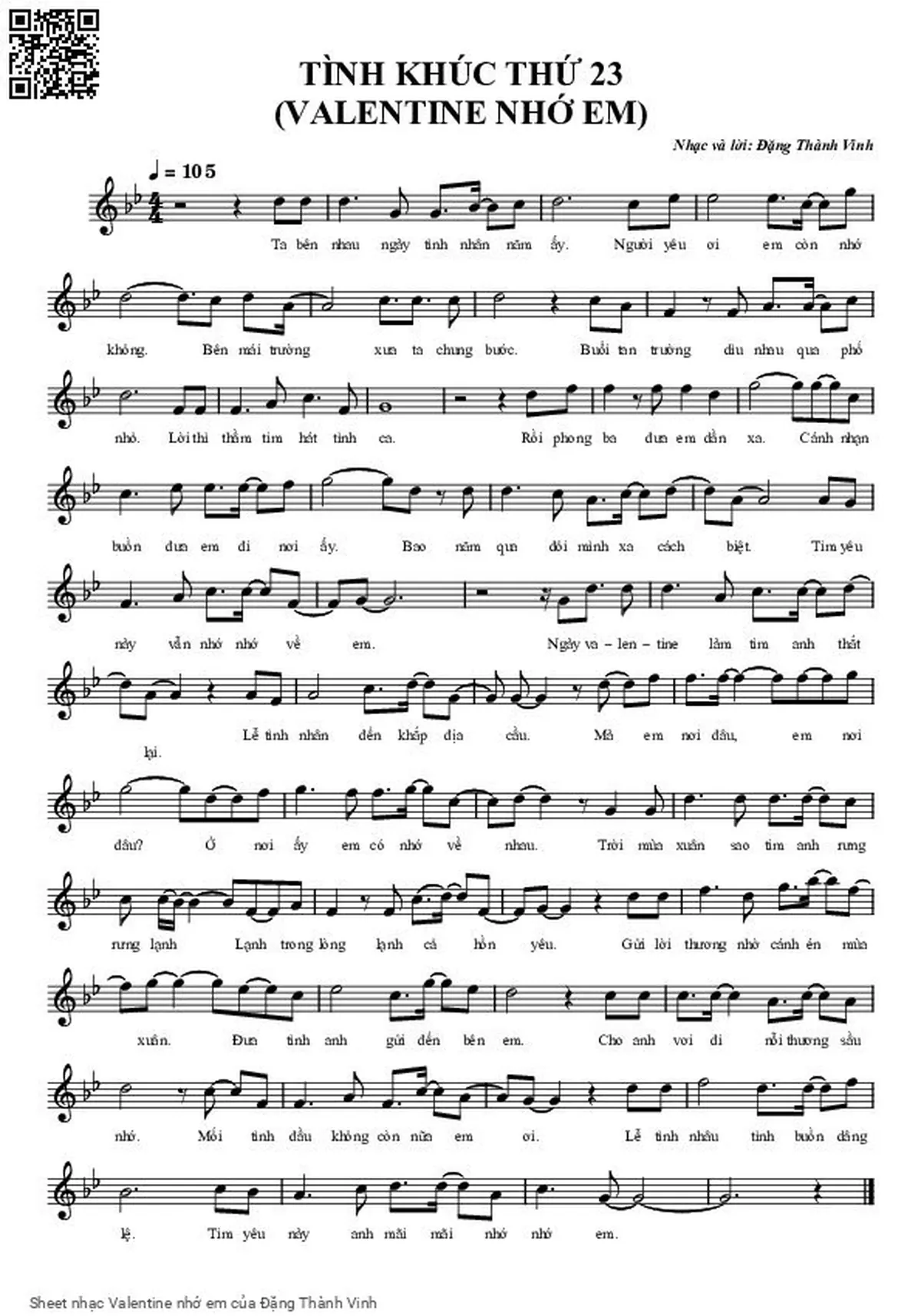 Đặng Thành Vinh Ta bên nhau ngày tình nhân năm ấy Người yêu ơi em còn nhớ không [PDF] [Sheet] [Lời H.A] [Mp4/Midi]